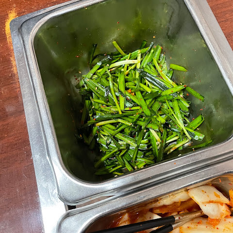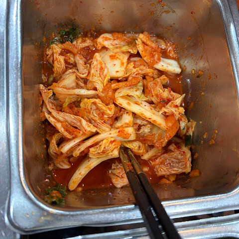 테이블 옆에 있는 김치 3종을 미리 낸 접시에 스스로 뺄 수 있습니다.