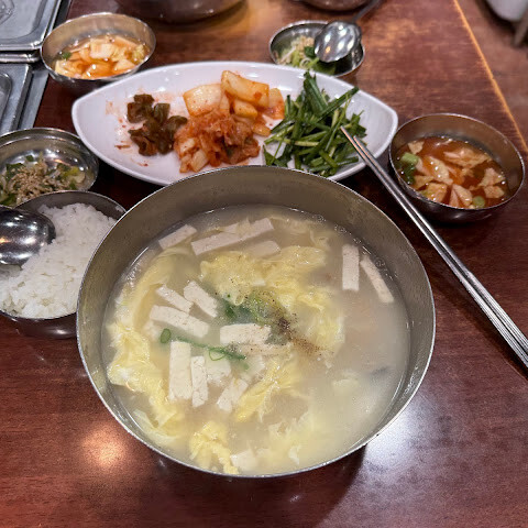 이곳은 줄이 길게 늘어설 정도로 인기 있는 곳이지만, 절대 포기하지 마세요! 메뉴는 간단하고 서비스도 굉장히 빨라서 사람들이 금방 드나들 수 있어요. 국물은 깊고 풍부한 맛이 일품이라 속이 편안해지는 느낌이에요. 곁들여 나오는 반찬들도 국물과 완벽한 조화를 이루어 정말 맛있었어요. 서울의 정통 아침이나 점심을 제대로 즐기고 싶다면 꼭 한번 방문해 보세요!