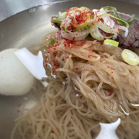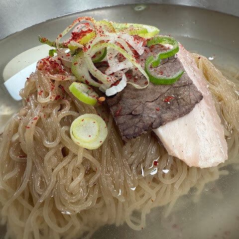 정말 맛있는 북한식 냉면입니다. 국물과 면은 단순하지만 맛있습니다. 한국에 방문해서 북한의 맛을 경험하고 싶은 분께 강력 추천합니다.