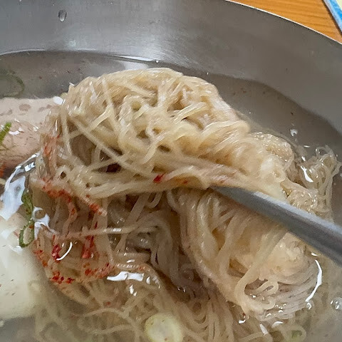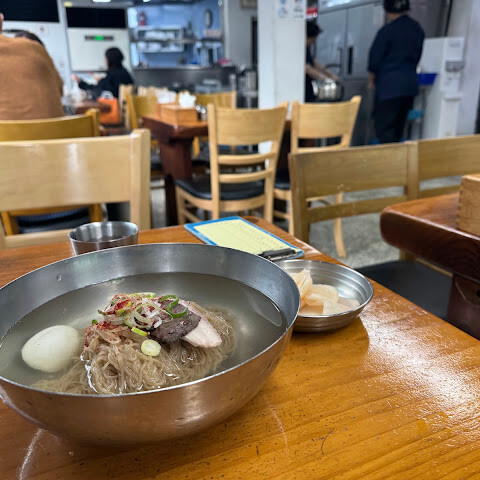 정말 상쾌한 식사였어요. 하루 종일 걸은 후 딱 좋았어요. 저는 냉면을 먹었는데, 국물이 깔끔하고 담백했어요.