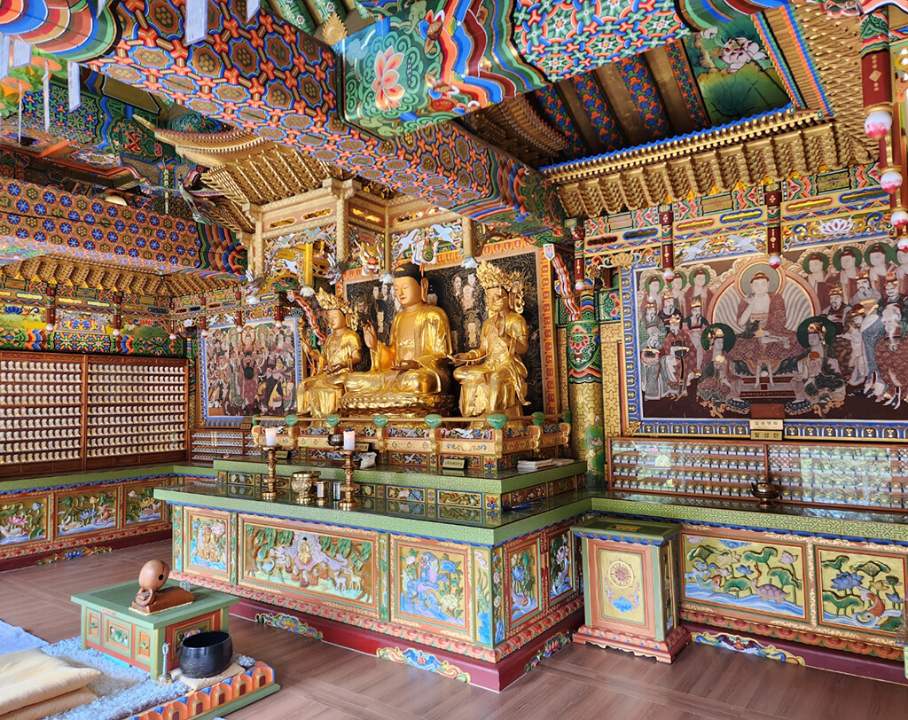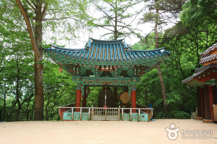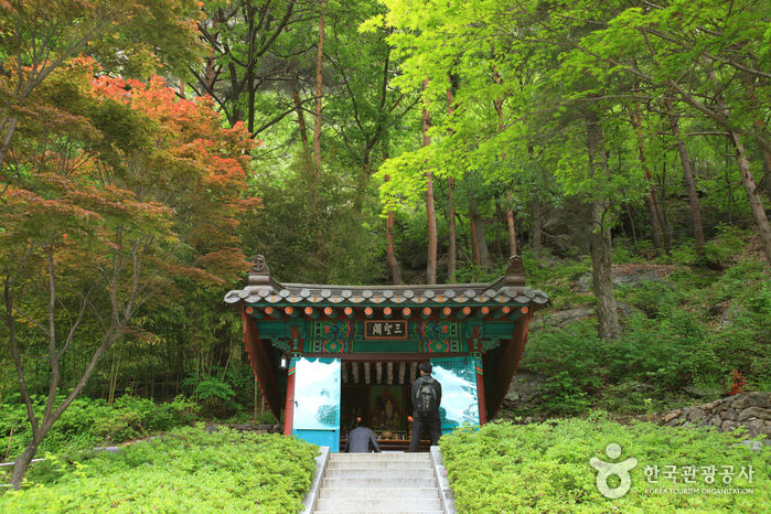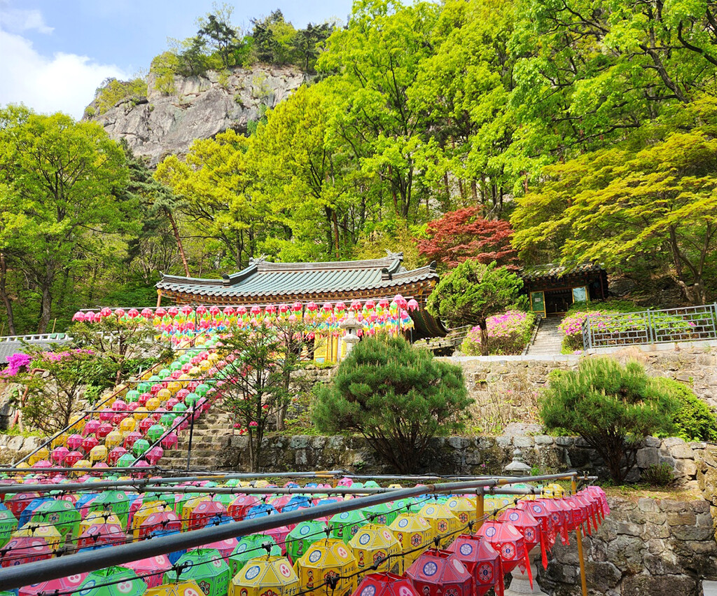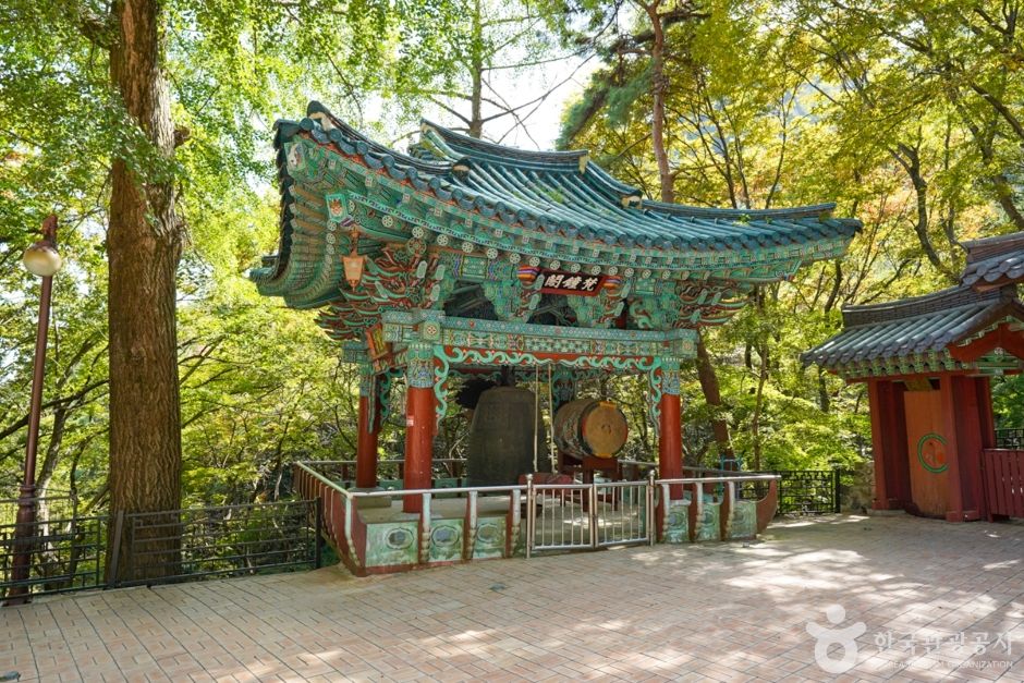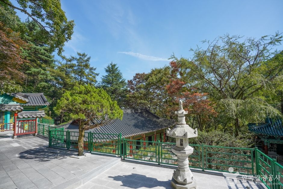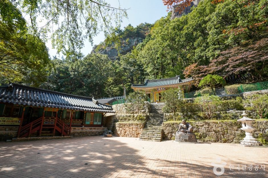 금오산 중턱에 구름도 쉬어가는 해운사가 있다. 해운사는 대혈사(大穴寺)라는 이름으로 신라말 도선(827∼898)이 창건하였다고 전해진다. 그러나 임진왜란 때 모든 건물이 소실되어 오랫동안 폐사되었다가 1925년 철하스님이 복원하였는데, 이때 절 이름을 해운암(海雲庵)이라고 바꾸었다. 1956년 대웅전을 신축하였으며, 이후 꾸준히 불사를 진행하면서 다시 절 이름을 해운사로 바꾸었다. 해운사 바로 위에 구미시를 향해 큰 입을 벌리고 있는 도선굴이 있다. 고려 말에 길재(1353∼1419)가 이 절과 절 뒤에 있는 도선굴에 은거하며 도학을 익혔다. 그는 고려가 망하자 고향인 선산군 해평면 금오산으로 숨어들어 학문을 익혔고 훗날 영남학파의 주춧돌이 되었다. 약사암, 마애보살입상 등 금오산에 산재되어 있는 불교유적지들을 비추어 볼 때 그 깊은 불사를 짐작해 볼 수 있다. 주차장에서 해운사까지 걸어서 한 시간 거리이나 지금은 금오산 케이블카가 개통되어 도착 지점이 해운사와 연결되어 있어 쉽게 접근할 수 있다. |