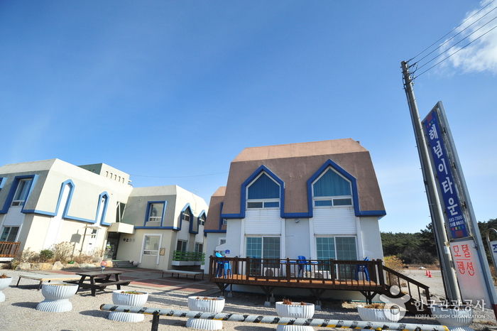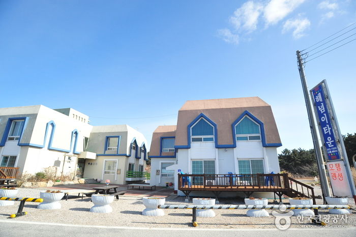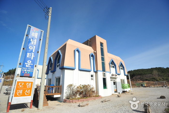 해넘이타운은 전북 부안군 변산반도 국가 명승지 제13호 적벽강의 해변에 자리 잡고 있으며 산과 들, 바다 그리고 저녁노을의 아름다움을 모두 즐길 수 있는 곳이다. 이곳은 바다와의 거리가 불과 5m 이내로 바다 풍경을 한눈에 내려다볼 수 있고, 국가 명승지 채석강과 쌍벽을 이루는 적병 강의 비경이 눈앞에 펼쳐져 있는 전망을 갖추고 있다. 객실은 모텔형으로 운영되고 있으며, 비교적 넓은 편이라 편안하고 안락하게 머물 수 있다. 숙박 시설과 함께 세미나실이 있어 워크숍, 수련회 등의 단체 모임 장소로도 충분히 가능하다. 또 해넘이타운 바로 앞으로 갯벌이 펼쳐져 있어 갯벌체험도 가능하다.