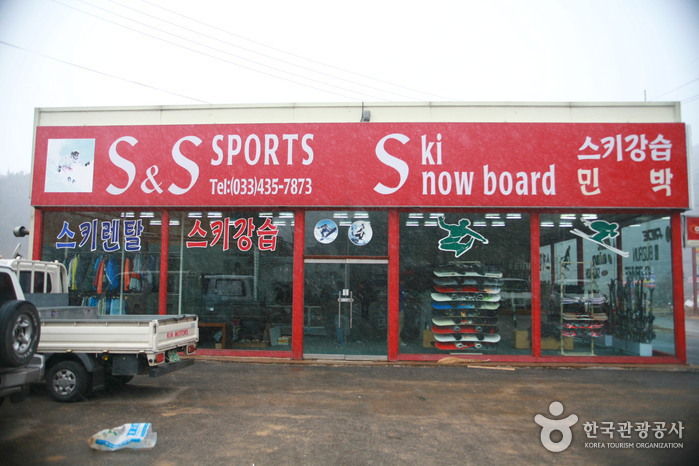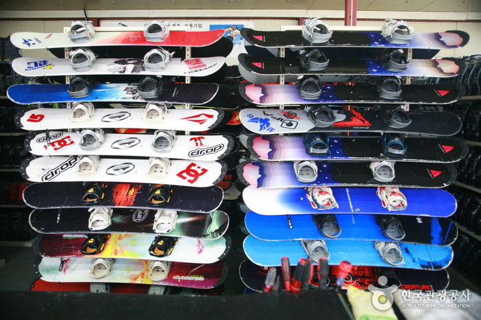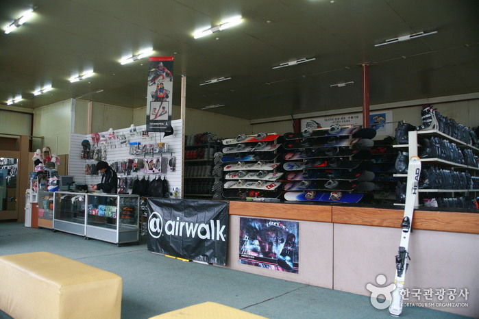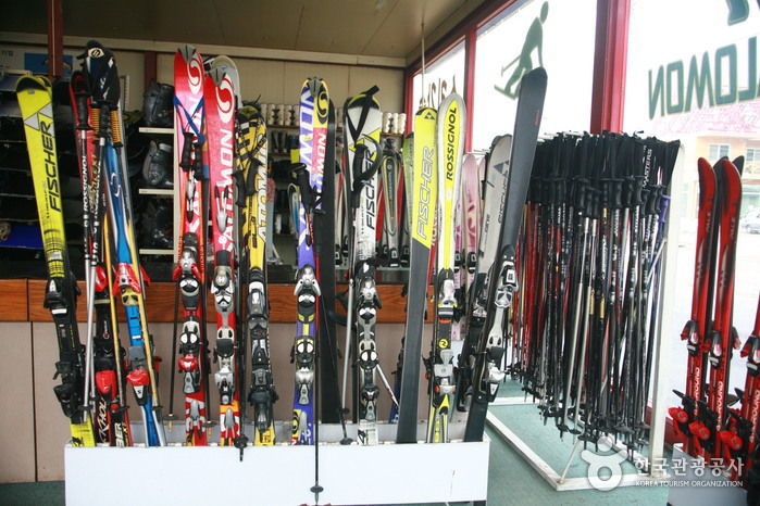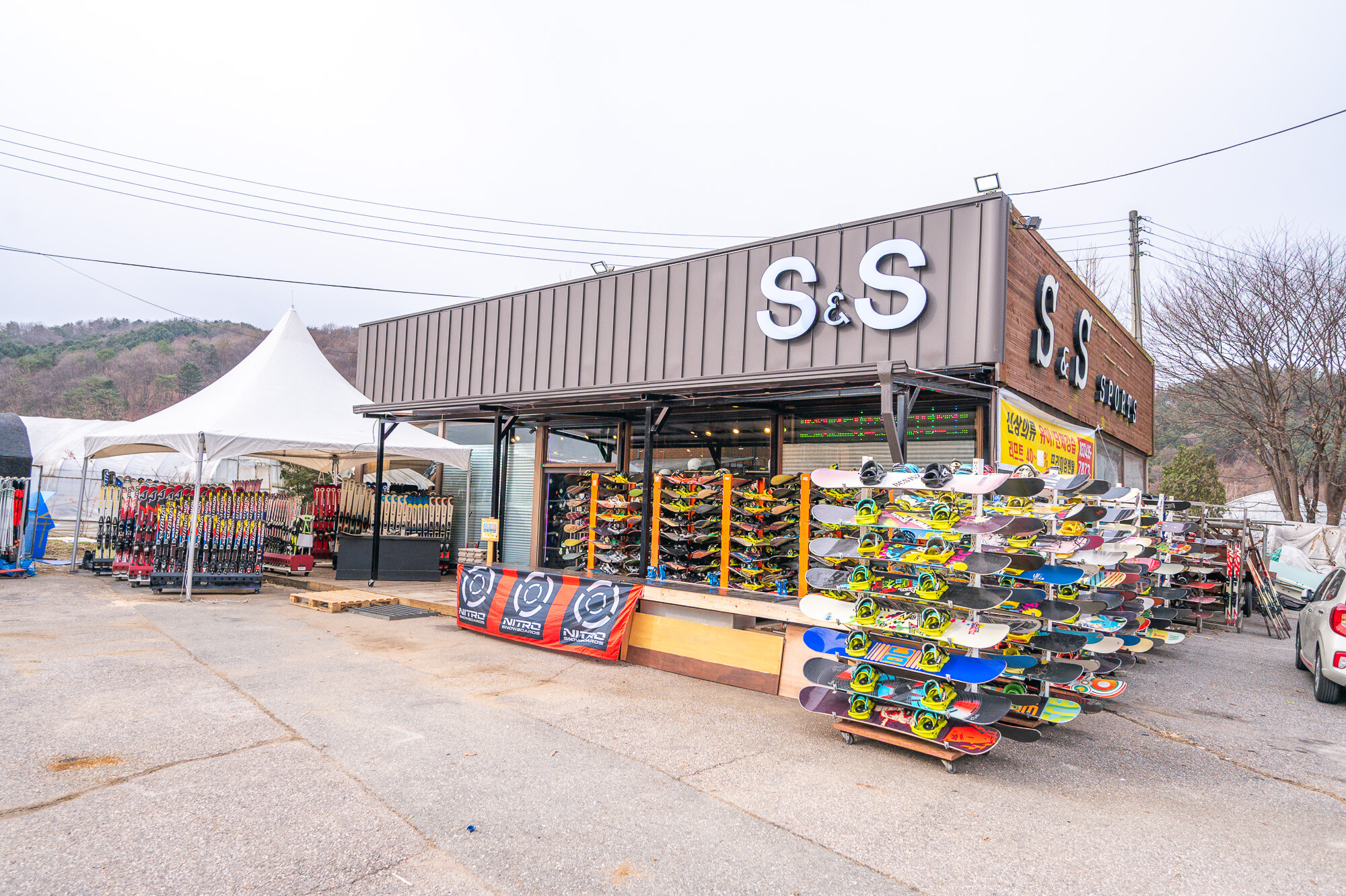 비발디파크 정문 삼거리에 위치한 스키, 스노우보드 전문렌탈샵이다.
