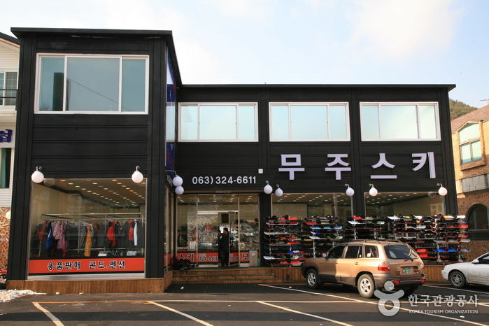 무주리조트 정문 앞에 위치한 무주스키는 (구)무주레저타운에서 상호 변경하여 신축 이전하였다. 스키장과 더 가까워진 무주스키에서 신상품과 리프트 할인 등 다양한 서비스를 즐길 수 있다.