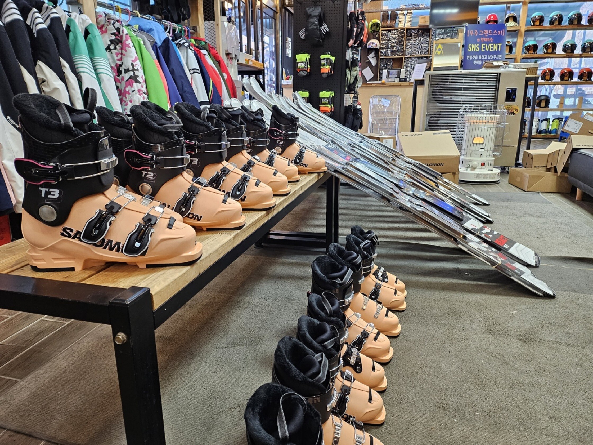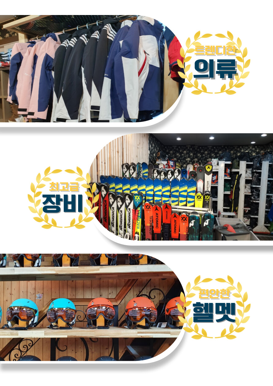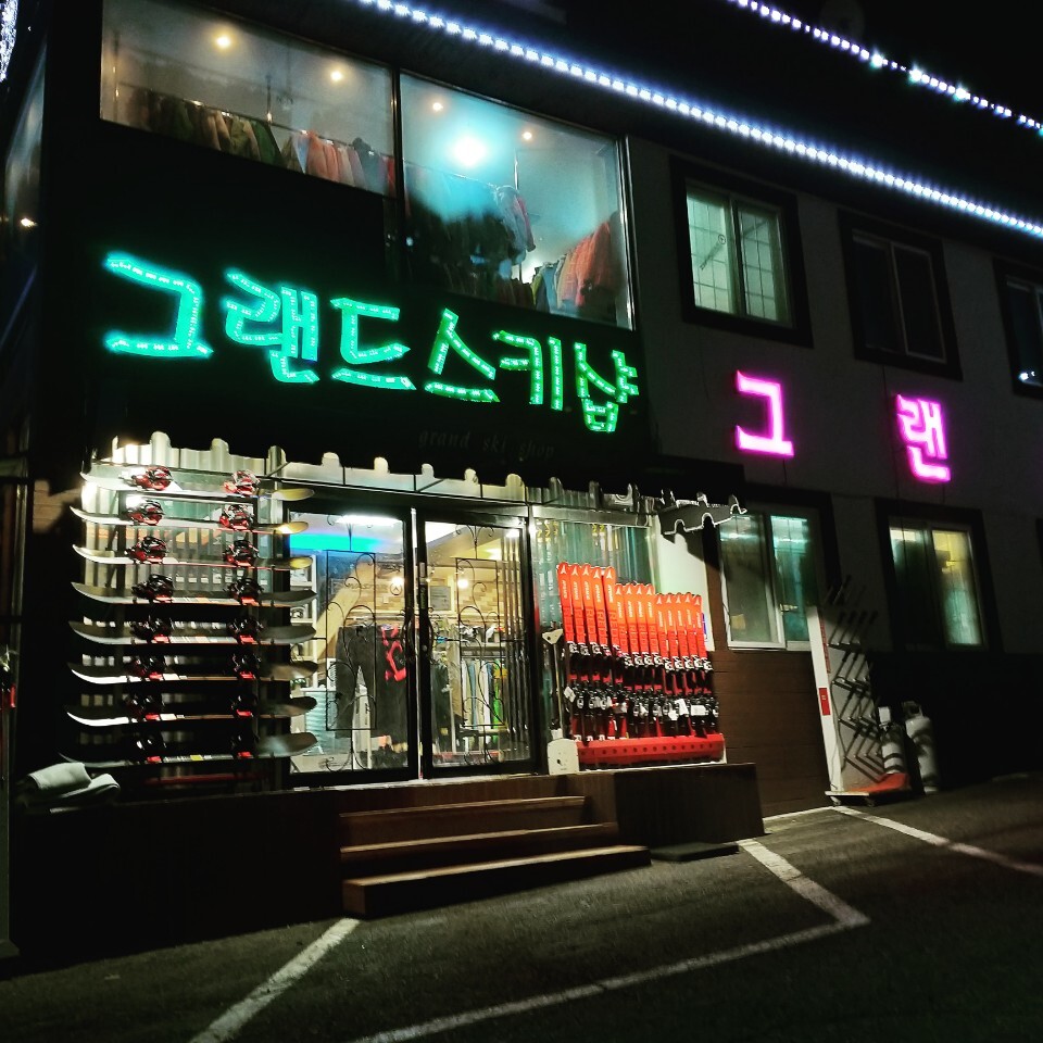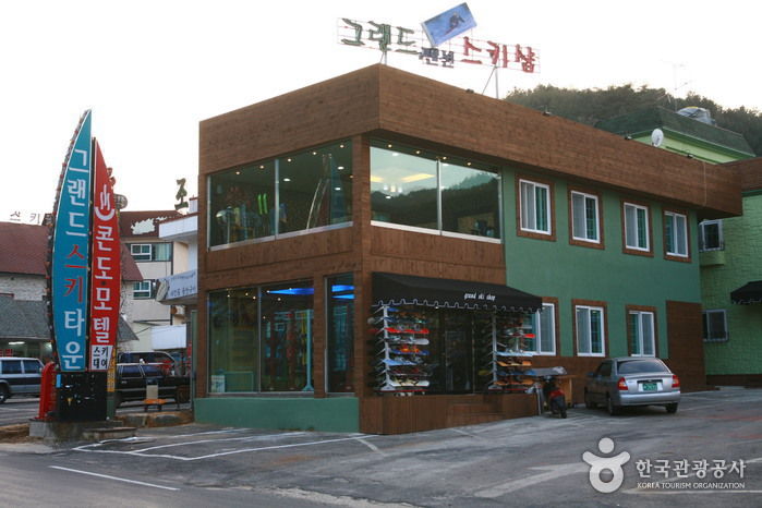 그랜드스키샵은 무주리조트 입구에 위치한 스키, 보드 토탈샵으로써 스키&스노보드에 관련된 모든 것을 해결할 수 있다. 렌탈은 물론 의류, 용품 등 최신 상품을 구매할 수 있는 전문샵 또한 운영중이다. 경력 많은 숙련된 최고의 강사들이 단계별로 강습도 가능하다. 무주리조트와 1km 거리에 위치해 있어 접근성이 좋다.