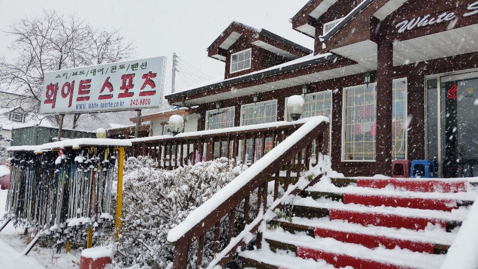 웰리힐리파크 인근에 위치한 화이트스포츠는 다양한 패키지를 운영하고 있다. 또한 펜션 할인 및 헬멧과 보호대 무료 대여가 가능하며, 넓은 주차장이 있다.