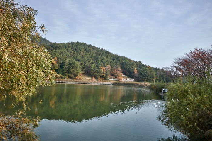 경상남도 남해군 남해읍에서 이동면 방면으로 가다 보면 농업기술센터 건물이 나오고 바로 앞에 저수지가 하나 있다. 봄에 유명한 벚나무가 있는 장평 저수지다. 매년 4월에서 6월 사이에 은은한 벚꽃과 노란 유채꽃, 형형색색의 튤립을 감상할 수 있다. 사진작가들은 좋은 작품이 나오는 사진 명소라고 극찬한다. 또한 야간에는 조명시설과 청사초롱이 어우러져 더욱 환상적인 장면을 연출한다. 기념사진을 위한 포토존과 산책로도 마련되어 있다.