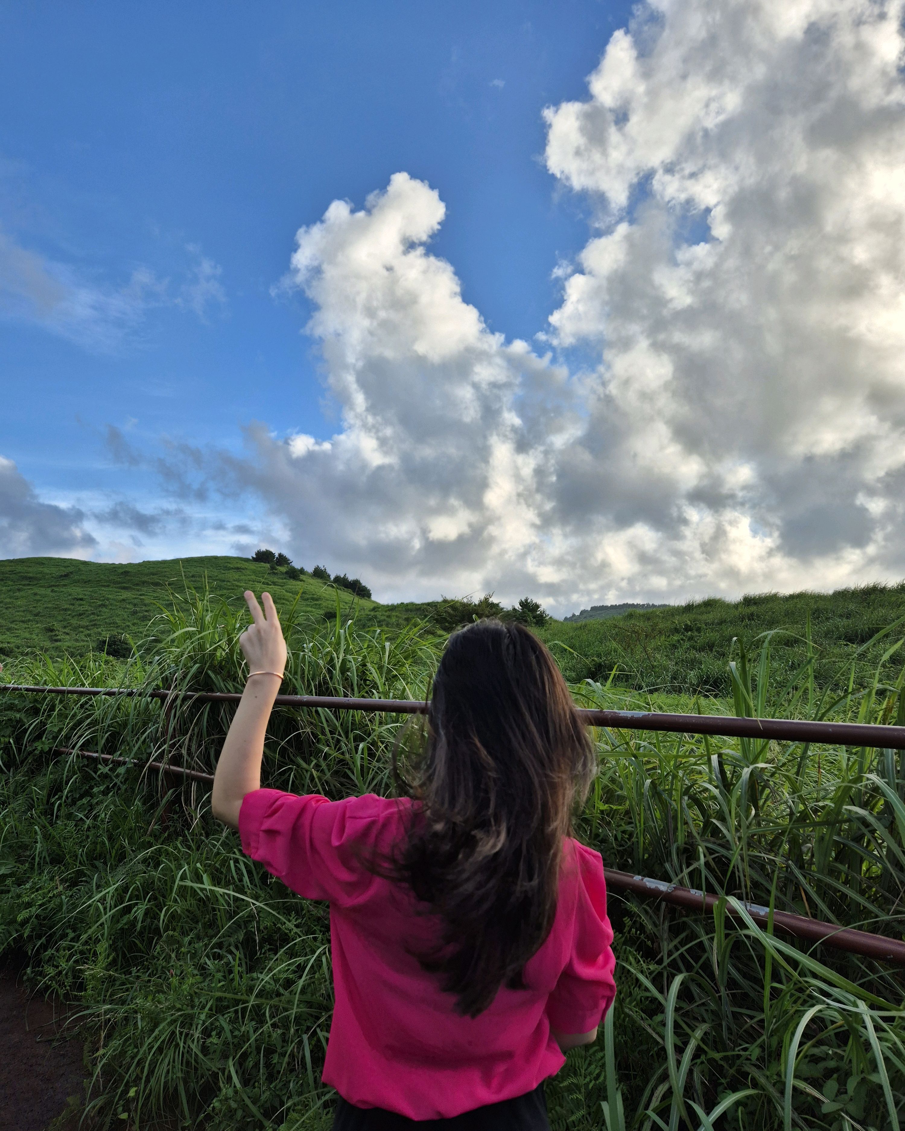 탁 트인 정상의 뷰, 초록빛 분화구, 올라가는 도중 만나는 오름의 능선. 모든것이 완벽합니다 👍