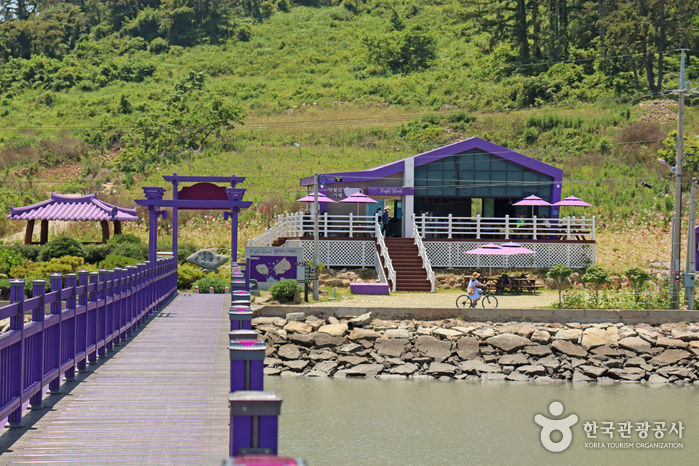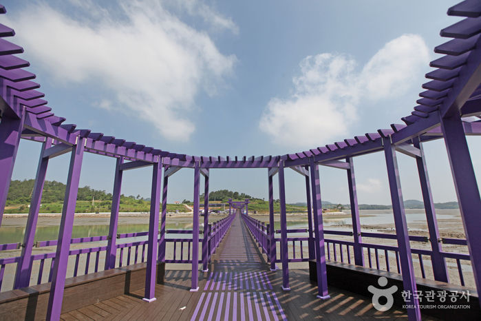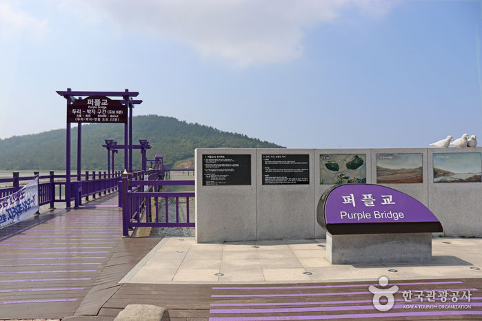 이러한 섬들을 이어주는 해상목교인 '퍼플교 (약 1,500m)가 있어서 바다 위를 걸어서 섬에서 섬까지 여행하는 이색적인 경험을 할 수 있다. 반월도와 박지도는 섬 둘레에 아름다운 바다를 따라 해안산책로가 조성되어 있으며, 걷기도 좋고 자전거를 빌려서 자전거 하이킹도 할 수 있다. 퍼플교라고 명명된 이 다리는 신안 안좌도와 박지도, 반월도 한 번의 여행으로 세 개의 섬을 돌아볼 수 있는 특별함이 있다. 과거, 반월․박지도는 미지의 섬이었지만 전남도가 선정한 ‘가고싶은 섬’으로 지정되어 세상에 알려졌다. 썰물 때면 갯벌로 둘러싸이는데 모래해변은 없지만 인공이 가미되지 않은, 자연 그대로의 모습을 간직하고 있다.