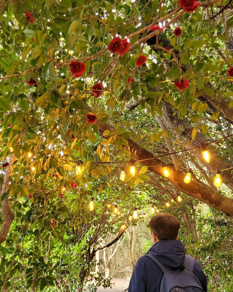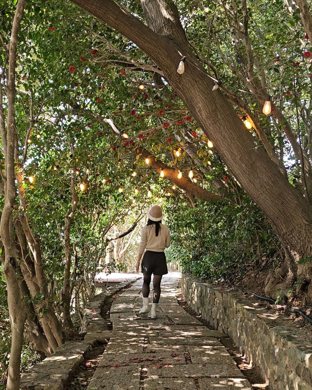 동백꽃 없는 동백터널이었지만 그래도 인조 동백꽃과 꼬마전구 덕분에 행복했어요.