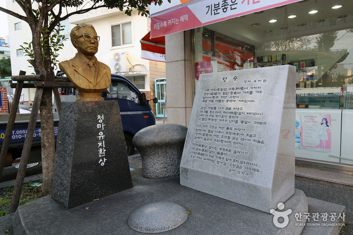청마거리는 청마 유치환과 정운 이영도의 애틋한 러브스토리가 스민 곳으로 유명하다. 이곳 청마거리는 우리나라 대표적인 문학가인 청마 유치환 선생의 문학정신을 기리고 선생의 작품 활동 배경을 중심으로 한 일정 장소를 특성화하여 문학 애호가들의 탐방코스는 물론 우리 지역만이 갖는 문화시설로 가꾸어서 관광자원화하기 위하여 2001년 2월 청마거리로 지정되었다. 그외 각종 조형물(안내 표지판 등)을 설치 관리하고 있었다. 유치환 선생의 생가가 있었던 자리에 청마거리 표지판이 보여서 가보았더니, 표지판으로부터 200M 우체국까지를 청마거리라고 지정해 놓았다. 유치환 선생의 유명한 연애 장소로 알려져 있는 곳이기도 하다. 유치환 선생의 가슴 아프고 잠깐의 행복한 사랑에 애절한 감동이 전달되는 곳 우체국 거리를 걷다 보니, 연애 못하는 사람의 절박한 심정까지 서글픔으로 다가온다.