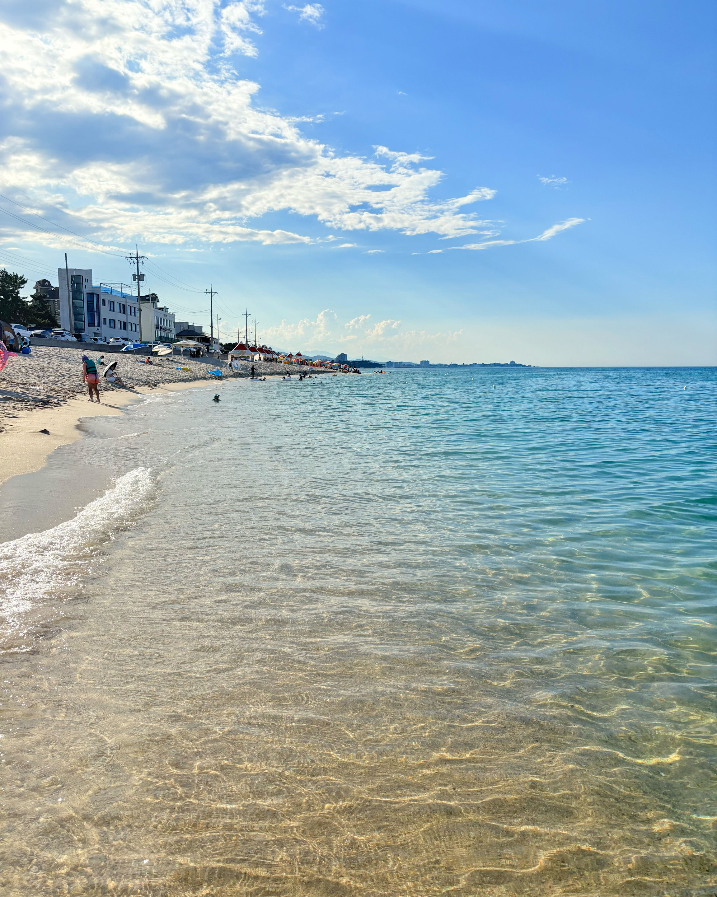 사천진해수욕장은 물이 깨끗하고 수심이 얕아서 부담 없이 놀기 좋습니다.