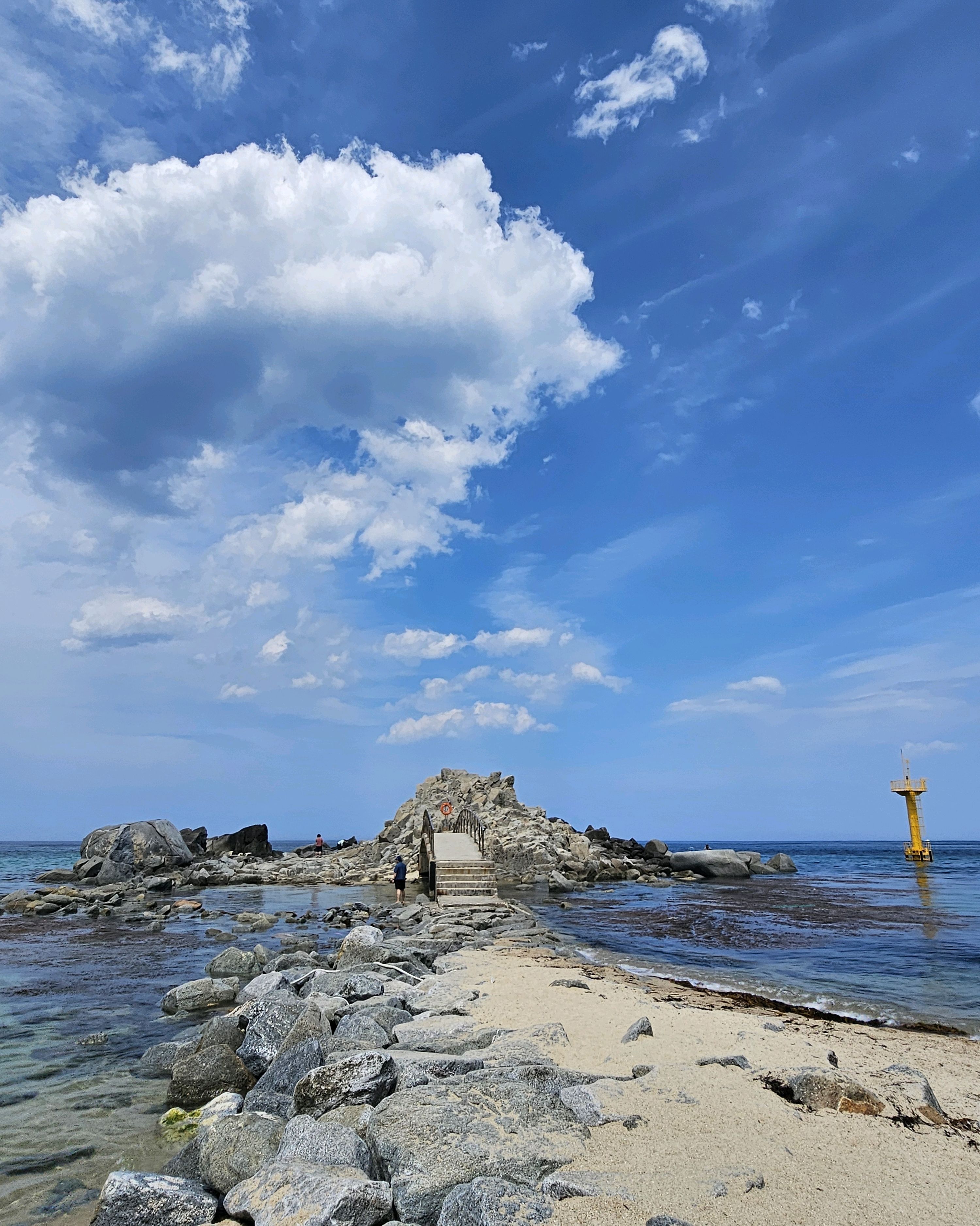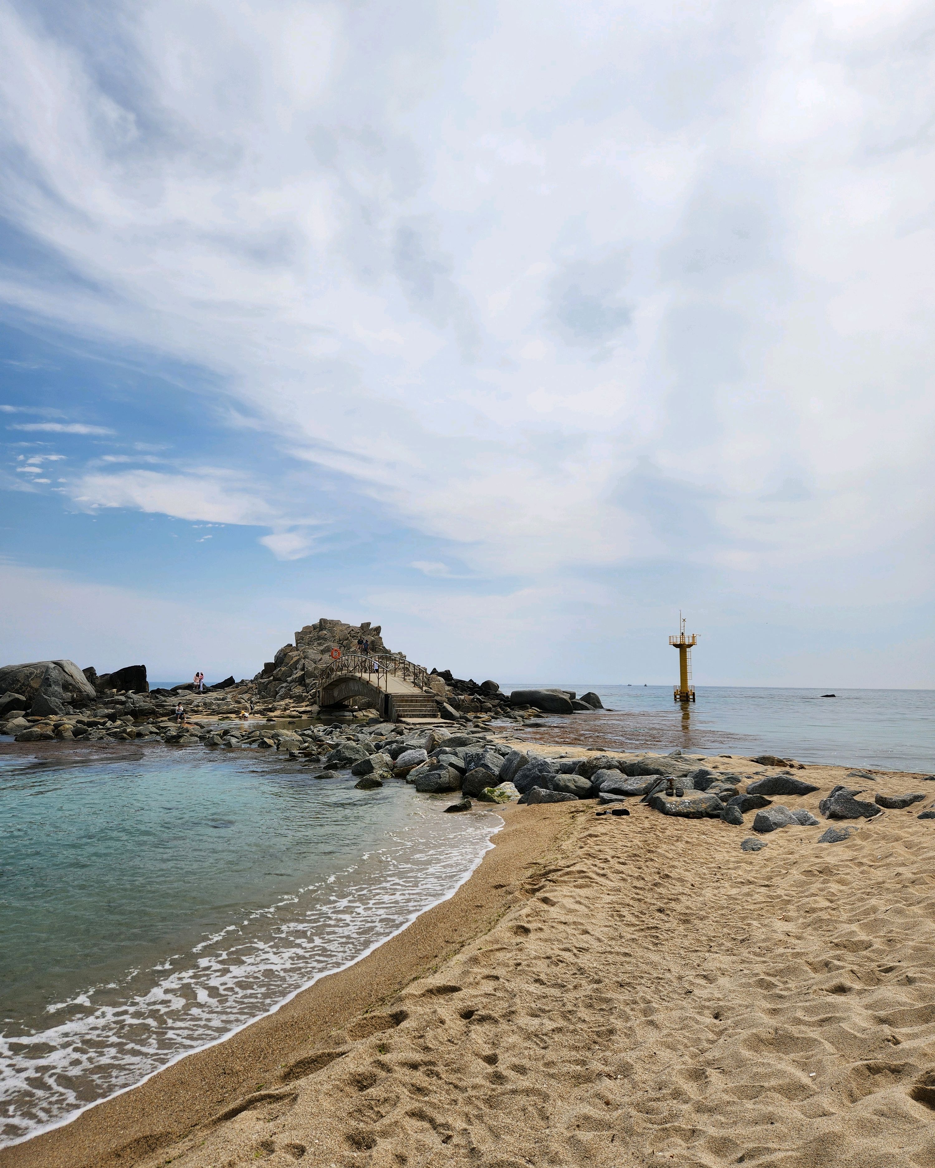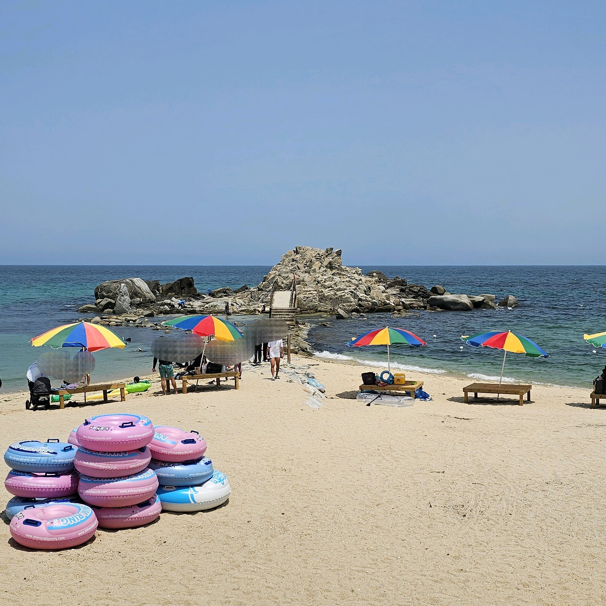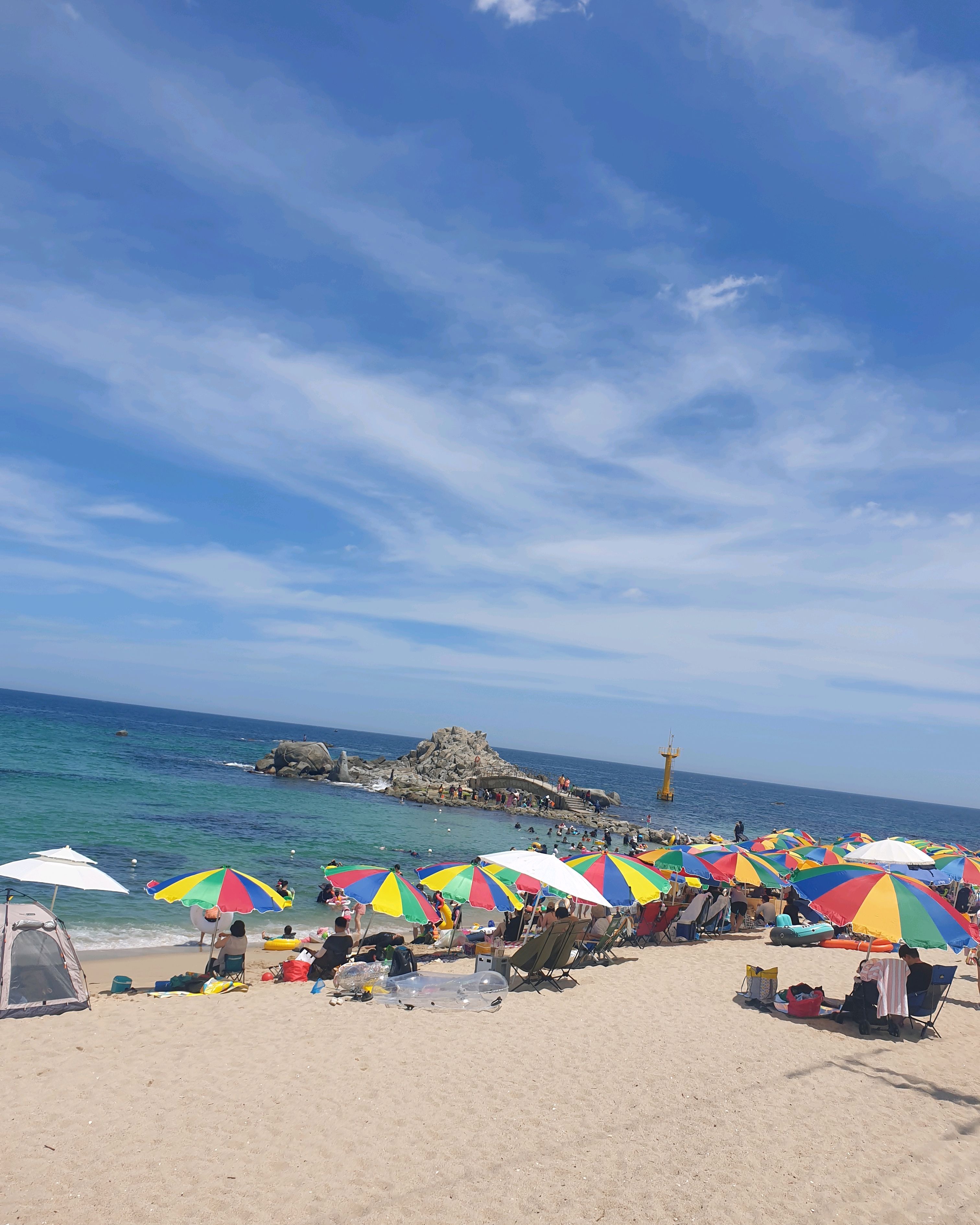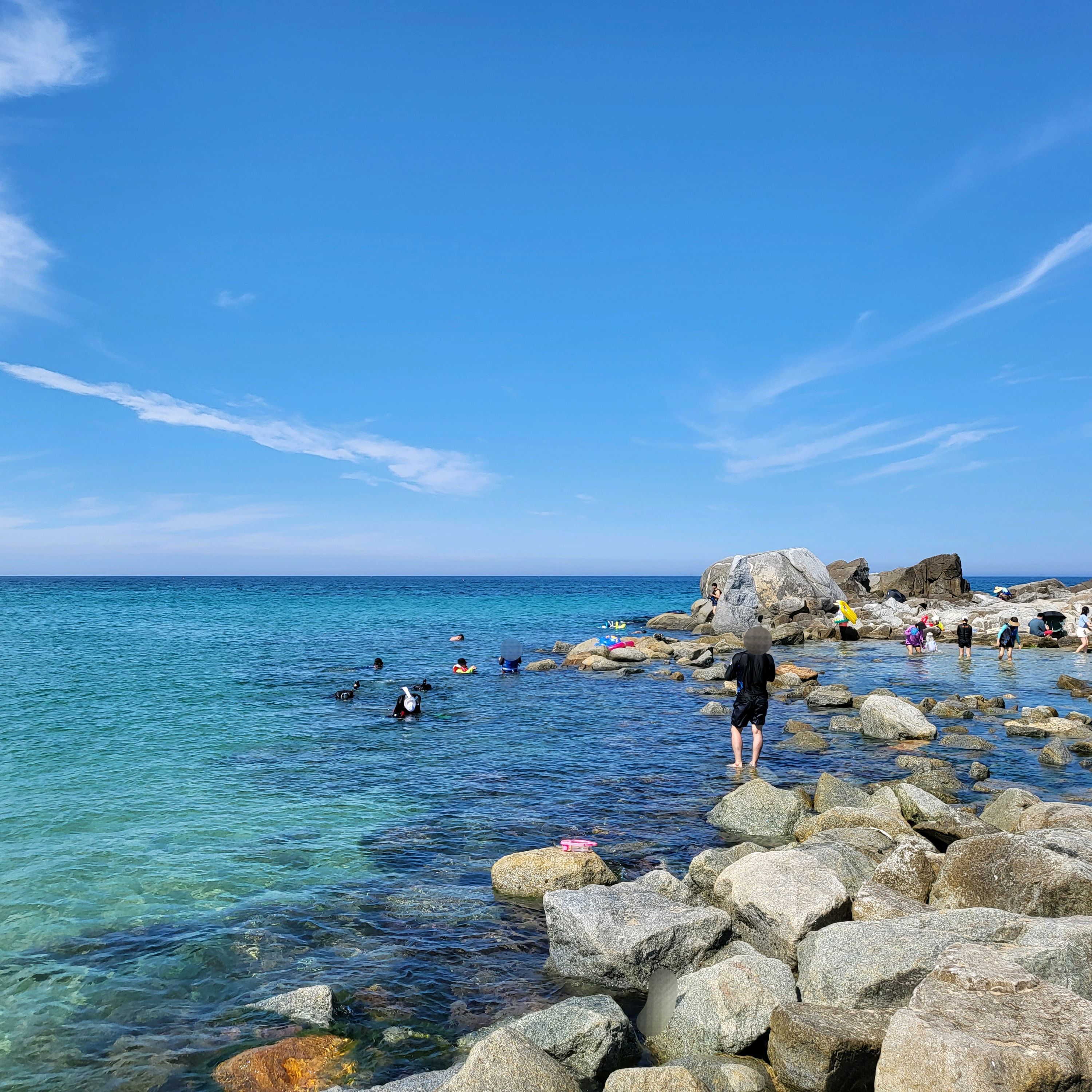SNS에 물 맑다고 왔는데 모래 때문에 물이 맑지는 않았구요 파도 때문에 움직이는게 힘들었어요. 바위섬은 파도가 많이 쳐서 못들어갔구요. 바위 근처 가면 그래도 물고기들 많이 볼 수 있었어요.