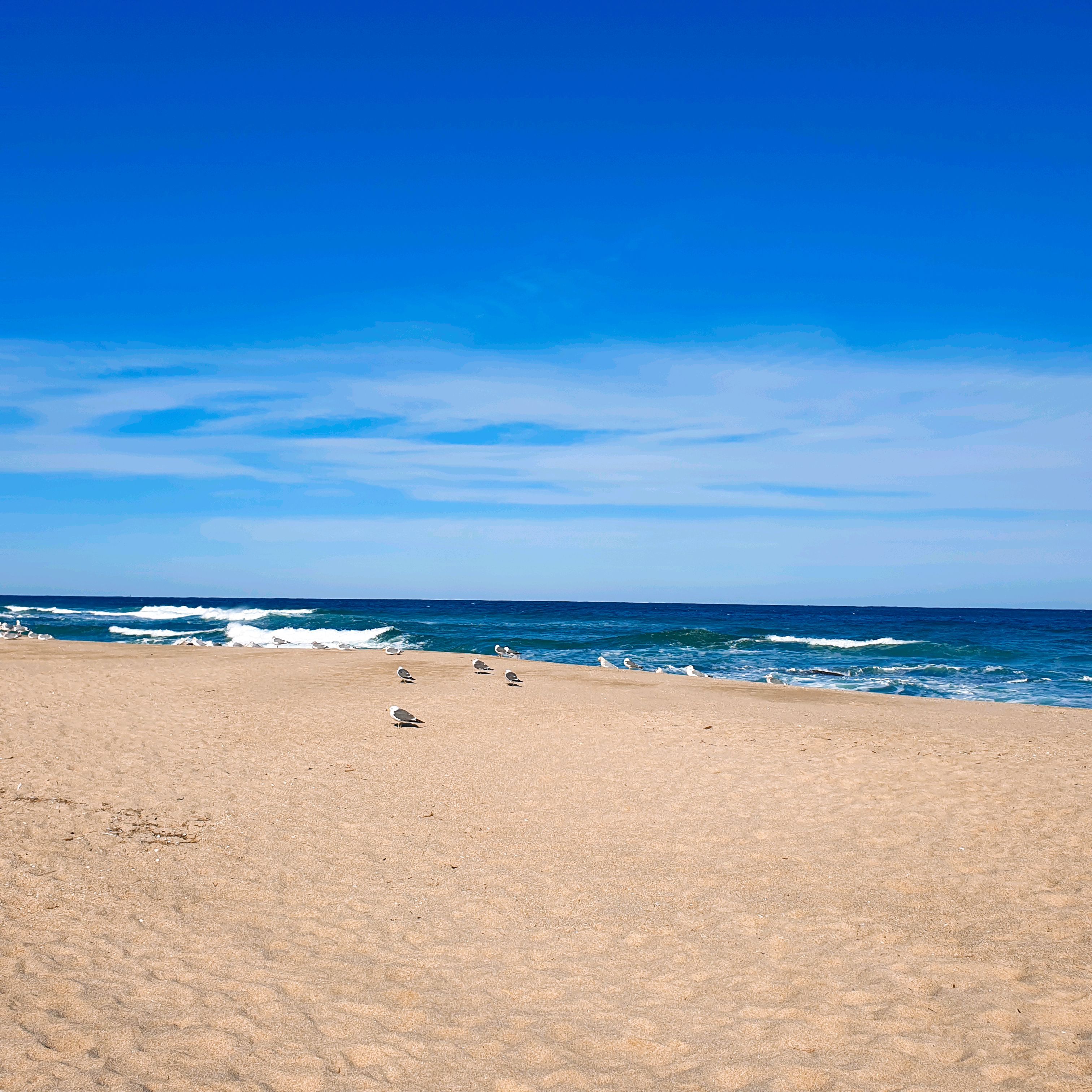 사천해변에 도착하니 잔잔한 파도 소리가 귓가에 스며들고, 갈매기들이 모여 바다를 바라보는 모습이 마치 여유를 즐기는 듯해서 한참을 바라보게 되었어요.