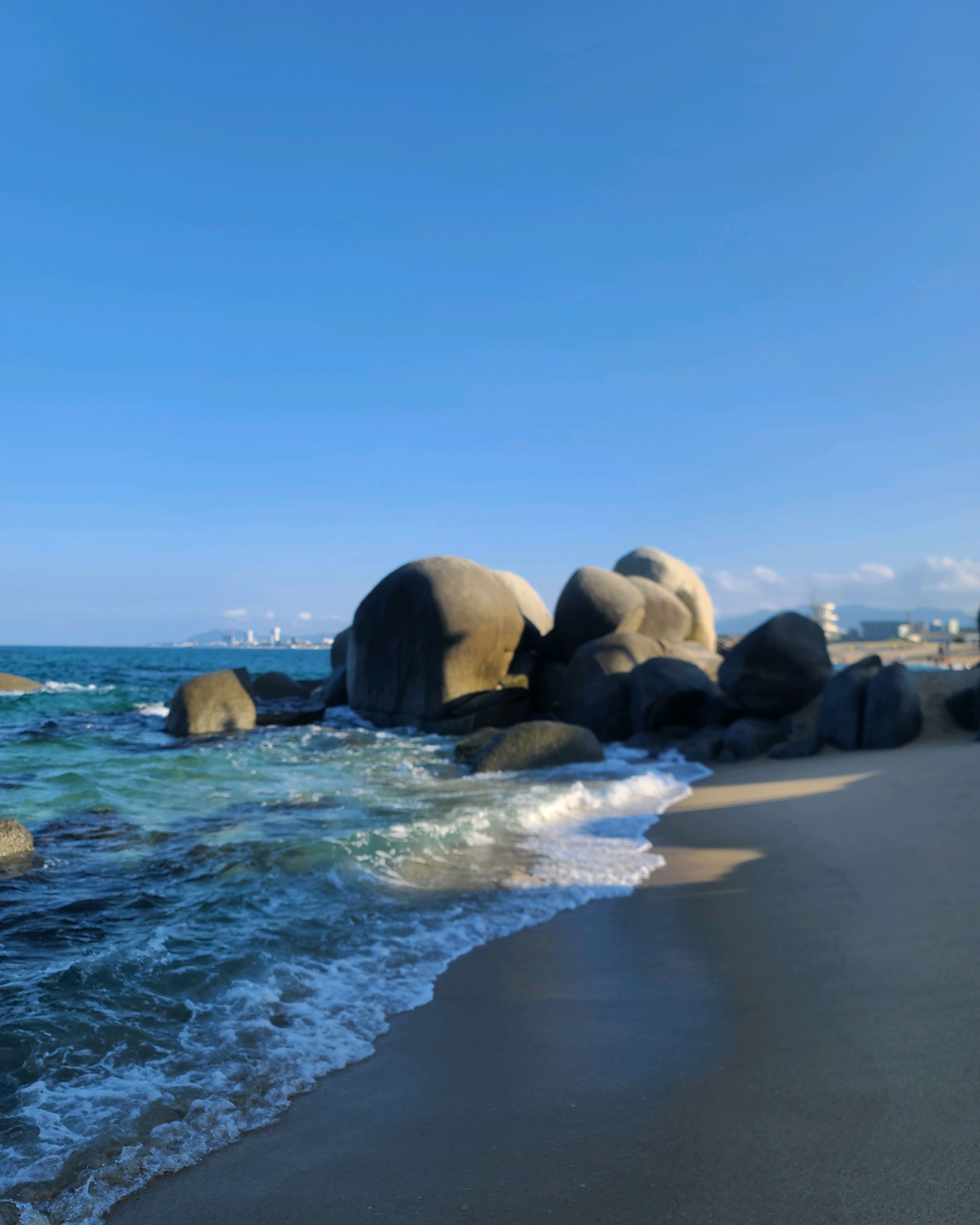 사람도 많지 않아 조용히 산책하기 좋았고, 맑은 하늘 아래 펼쳐진 푸른 바다와 흰 파도가 어우러져 그림처럼 아름다웠어요.