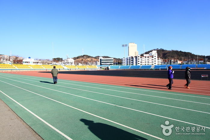 통영시민들의 여가활용을 위하여 만든 공설운동장이다. 육상경기 공인 3종 경기장 시설이 완비되어 있는 곳으로 통영컵국제축구경기도 매년 열리는 곳이다. 잔디구장이 마련되어 있어 어린 축구선수들의 연습장으로도 넓게 활용되고 있다.
