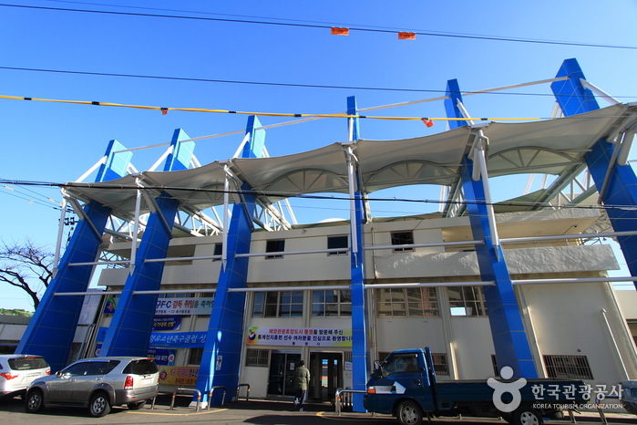 문화와 예술의 고장 통영에서 잔디시설까지 갖춘 국제규모의 축구장을 조성하여 시민들이 누구나 즐길 수 있도록 생활체육프로그램을 기획 운영하여 건강 증진에 기여하고 있다. 실내체육시설인 충무체육관도 같이 있어 실내 체육을 하기에도 좋은 곳이다. |