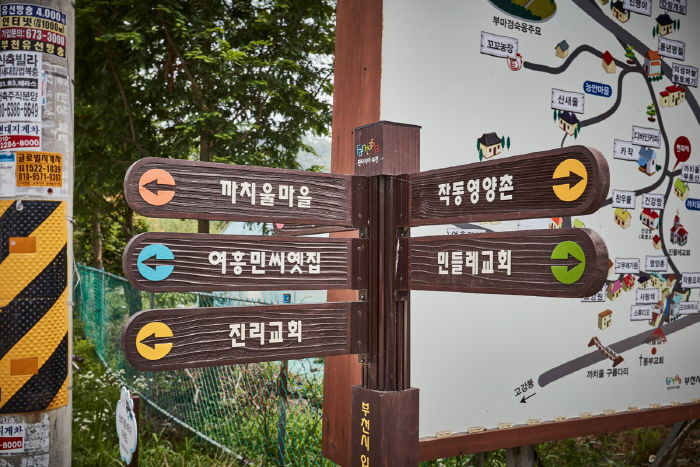 까치울은 작동산,지향산 등이 마치 병풍을 쳐놓은 듯 마을을 품에 안은 전원마을이다. 옛부터 까치가 유난히 많은 작고 아름다운 마을이라하여 까치울이라는 이름이 붙었으며, 성종의 다섯째 딸인 경숙옹주의 묘와 영조의 열번째 옹주인 화유옹주의 묘가 안장되어 있는 유서깊은 마을로 20여개의 음식점이 다양한 메뉴로 성업을 이루고 있다. 특히 오리를 이용한 보양식집이 주를 이루며, 경기도 지정 음식문화거리로 지정되며 시민들이 안심하고 믿고 즐겁게 외식할 수 있는 음식 안전지대, 마을가꾸기 특화사업(꽃밭,꽃길 조성 등).까치울 음악회 개최 등을 통해 아름다운 청정 농촌마을에서 온가족이 기쁨을 만끽할 수 있는 힐링공간 제공과, 행복한 밥상을 선보이기 위해 지속적으로 노력하고 있다.