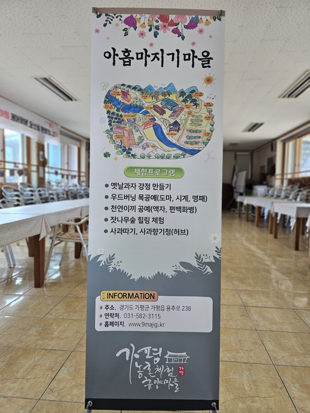 아홉마지기 마을은 가평 8경 중 제 3경인 용추구곡이 있는 마을로 그만큼 숲이 아름답다. 숲 해설사와 함께 걸으며 자연식생과 문화에 대한 이야기를 들을 수 있어 아이들과 함께하면 더 좋다. 단체방문객을 대상으로 에코엔티어링(지도를 바탕으로 마을 이곳저곳을 탐방하며 주어진 미션을 수행하는 체험)이라는 프로그램을 운영하고 있어 모험심과 협동심을 기르기 위한 수련회 등에 적격이다.