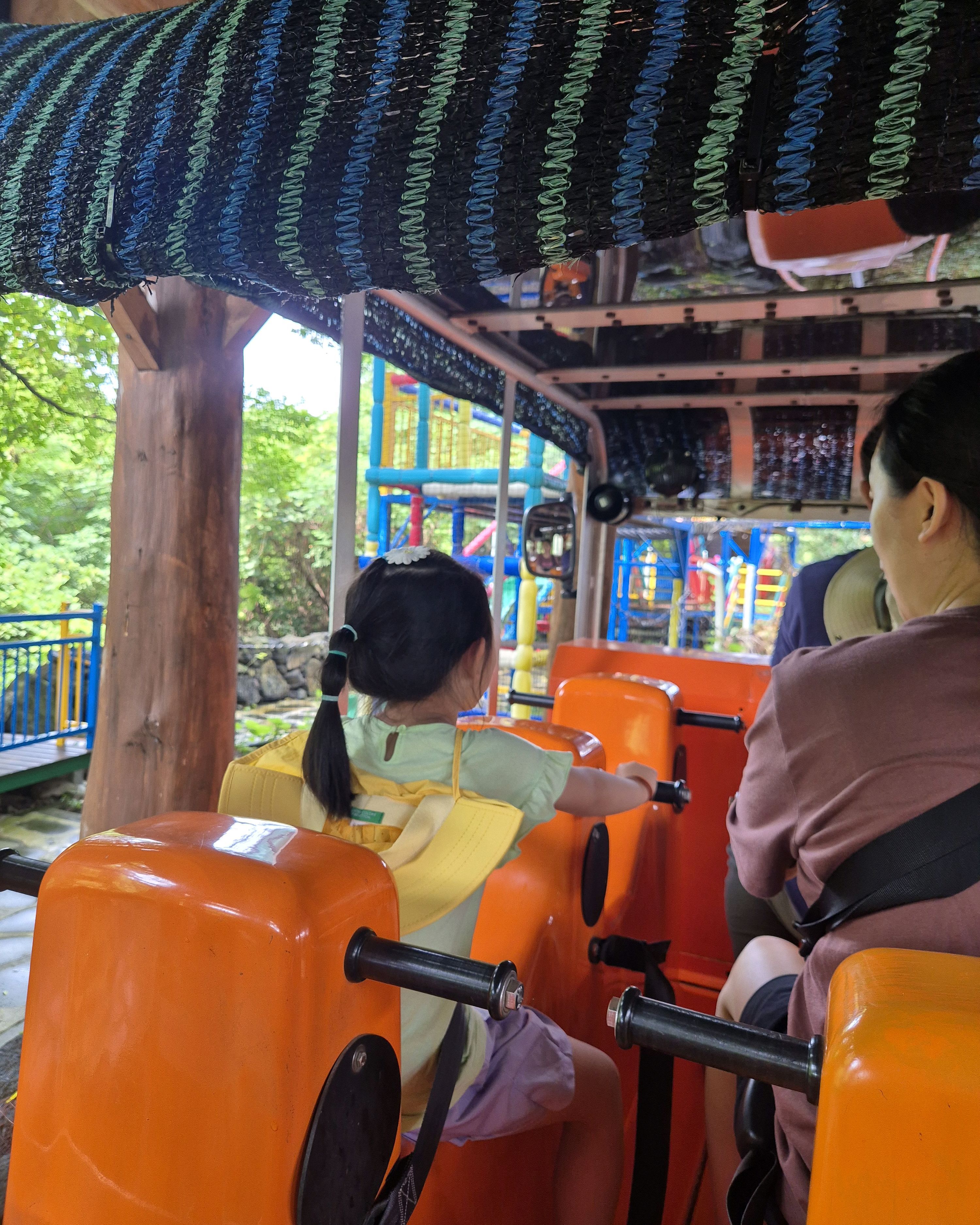 귤 따기도 재미있았는데 동물 친구들도 많고 놀이터도 너무 재미있어서 시간가는 줄 몰랐어요! 모노레일타면서 설명도 해주시고 돼지 먹이 주기도 재미있었어요.