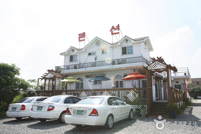 꽃향기펜션은 꽃지해수욕장과 방포해수욕장 입구에 위치한 아늑한 펜션으로 해수욕장과 가까워 일몰 감상이나 해수욕하기에 편리하다. 30대 이상 동시 주차할 수 있는 주차시설과 6~10인이 머물 수 있는 온돌방은 물론 가족 단위의 3~4인용 침대방도 마련되어 있다. 이외에도 펜션 바로 앞에 낚시터가 있으며, 유아 풀장도 갖추어져 있다. 펜션 바베큐장은 야외 바베큐 그릴이 준비되어 있어 직접 잡은 조개도 구워 먹을 수 있다.
