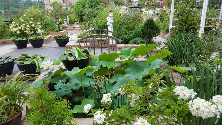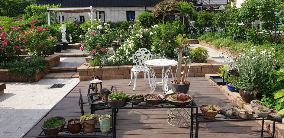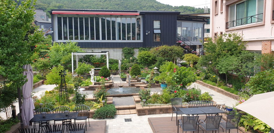특히 정원에 다양한 꽃과 식물이 멋저요.