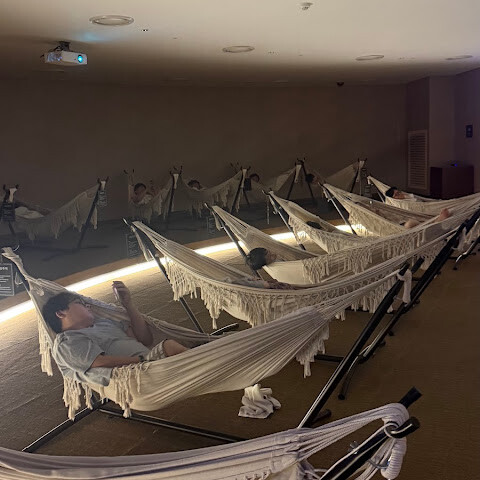 이 사우나는 다양한 온도와 누울 수 있는 해먹이 있는데, 사람이 엄청 많아요! 😅🤣