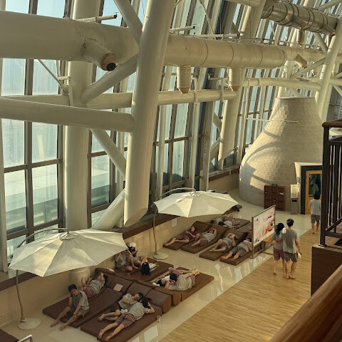이곳은 몸과 마음을 편안하게 쉴 수 있는 곳입니다. 다양한 종류의 사우나, 족욕탕, 마사지 의자, 그리고 맛있는 음식들이 준비되어 있습니다. 스파 시설도 있고요 (남녀 분리). 저는 이곳에서 몇 시간이고 시간을 보낼 수 있을 것 같아요. 꼭 방문하실 때는 충분한 시간을 확보하세요.