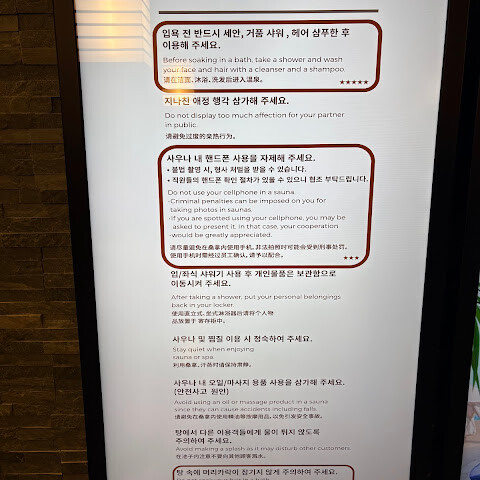 한국식 스파를 좋아하는 40대 여성의 입장에서 말씀드리자면, 일요일 밤에 이곳은 정말 사람들로 북적였습니다. 젊은 사람들이 많고 시끄럽고 소란스러웠어요. 다른 날에 갔으면 더 좋았을지도 모르겠습니다. 편안한 휴식을 원하신다면 이곳은 추천하지 않습니다.