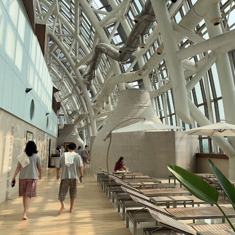 이곳은 정말 휴식과 재충전을 위한 최고의 장소입니다. 다양한 종류의 사우나, 토핑을 얹어 직접 라면을 해먹을 수 있는 다이닝 공간, 낮잠을 즐길 수 있는 해먹, 시청각 시설, 야외 족욕 공간까지 갖춰져 있습니다. 저희는 부산 여행 중 두 번이나 방문했습니다. 첫 번째는 여행 둘째 날, 4시간 이용권이 포함된 부산 패스를 이용해 갔지만, 너무 늦게 도착해서 한 시간 정도밖에 이용하지 못했습니다. 두 번째는 7일째 되는 날, 귀국 비행기를 기다리면서 무제한 이용권을 구매해 꽤 오랫동안 머물며 낮잠도 잤습니다. 정말 최고의 경험이었습니다.