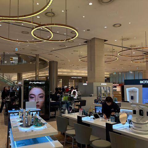 신세계 MTR역 12번 출구 근처, 1층 프라다와 디올 매장 사이에 위치해 있습니다. 백화점에 들어서면 바로 프라다와 디올 사이에 있습니다.