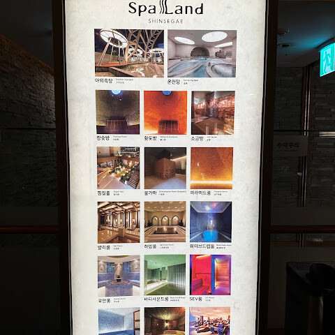마치 인공 온천 스파 같았어요. 주로 휴식을 취할 수 있는 공간이었는데, 사우나복을 입고 돌아다니거나 스팀룸에서 땀을 흘릴 수도 있고, 먹고 마실 수도 있었죠. 저희는 저녁 9시쯤 갔는데 10시에 문을 닫더라고요. 그래서 달콤한 쌀국수 가게나 다른 비슷한 가게들이 문을 닫아서 좀 아쉬웠어요.