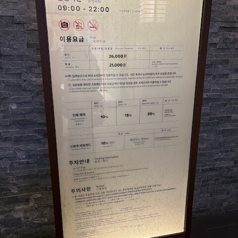 내부 레스토랑들도 가격이 적당합니다. 사우나를 별로 좋아하지 않지만 가족들과 함께 방문하고 싶다면, 레스토랑에서 점심이나 저녁을 먹으며 시간을 보내는 것도 좋을 거예요. 그러면 시간이 더 빨리 갈 겁니다.