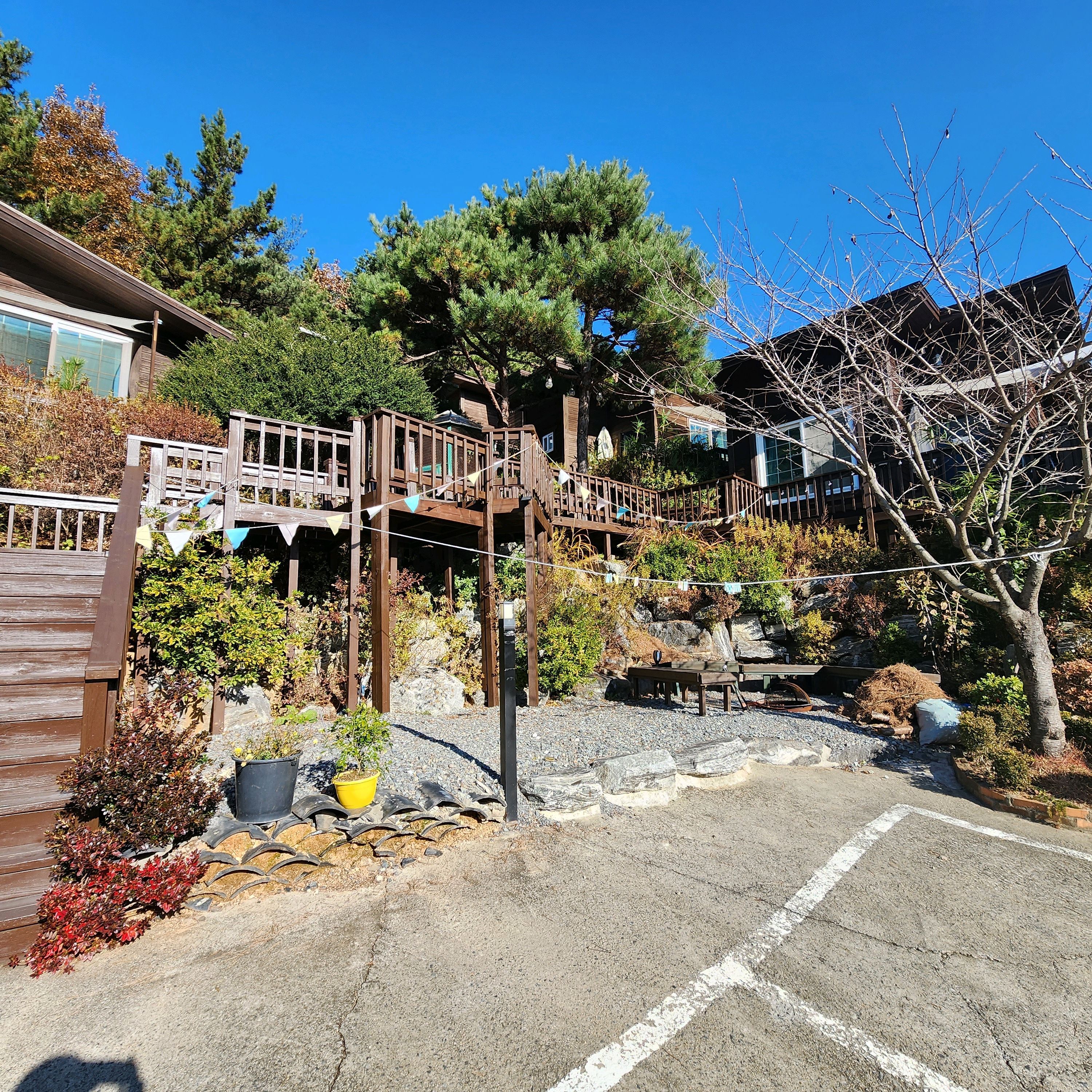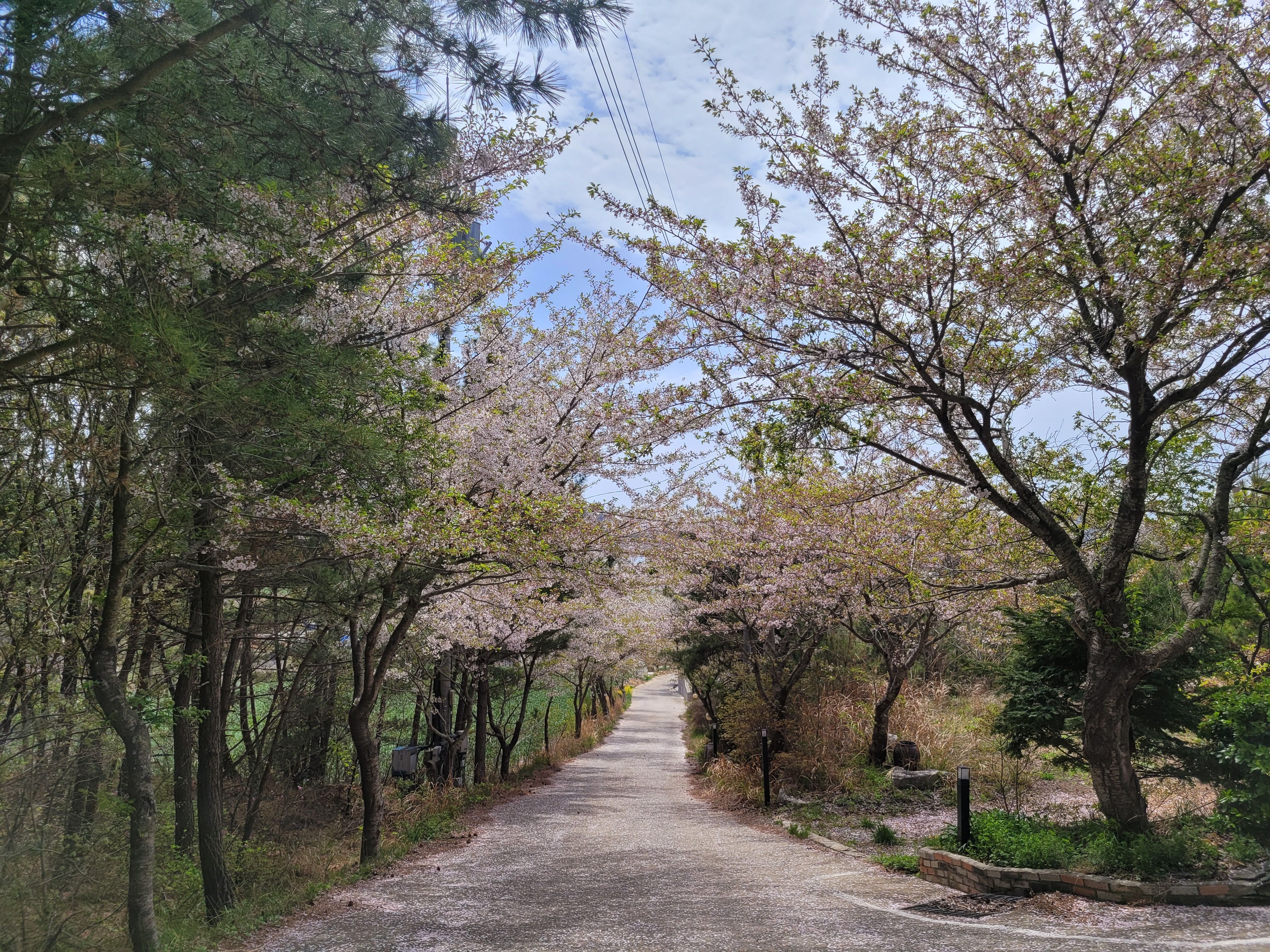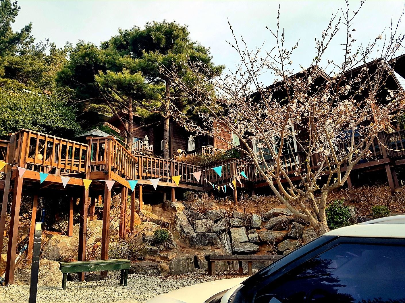 펜션에 벚꽃이 피기 시작해서 너무 예뻤어요.
