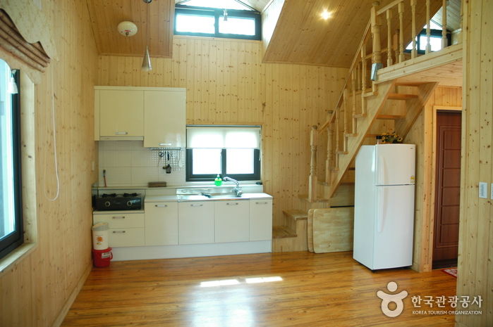 아늑한 통나무집 모양으로 설계되어 있는 이곳은 유럽풍의 중우한 분위기를 주는 침대객실로서 동양 속의 서양을 느끼게 해줄 수 있는 퓨전 휴식공간을 제공하고 있다. 겨울의 별미인 바비큐 시설도 설치되어있다. 오색 빛으로 물들며 노을 지는 태양은 한 폭의 수채화 같은 장관을 자아내는 모습을 보며 즐거운 시간을 보낼 수 있다. 세계 5대 갯벌 중 하나로 꼽히는 ‘서해안 갯벌’에 속한 태안군은 관광객들이 많이 찾는 체험 학습 현장 중의 하나이기도 하다.