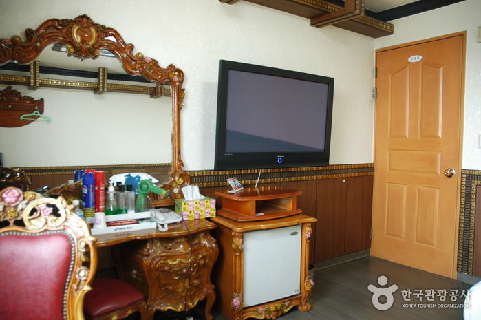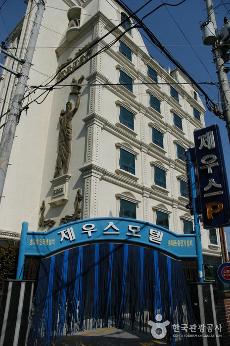 고딕 양식 느낌의 하얀 건물과 파란 간판이 인상적인 제우스모텔은 객실 내부로 들어서면 중세풍의 가구로 인테리어 되어 있다. 침대방과 온돌 방으로 나뉘어 있어 손님의 기호에 맞춰 선택할 수 있도록 하였고 TV, 미니 냉장고, 컴퓨터, 화장대, 생활용품 등의 편의 시설이 갖춰져 있다. 화장실은 정돈되어 있고 욕조가 있어 목욕하기에 편리하다.