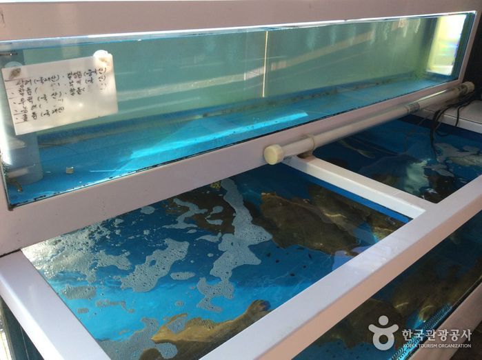 하당 평화광장에 위치한 황금어장은 탁 트인 목포 앞바다가 훤히 보이는 횟집이다. 계절별 다양한 횟감과 밑반찬이 깔끔하게 차려진다.