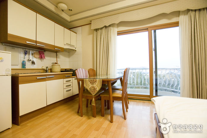 모든 객실에서 제주 제 1경인 성산일출봉이 보이는 넓은 주차장을 겸비한 숙소이다. 근거리에 우도가 자리 잡고 있고 성산일출봉을 등에 지고 오조리 바닷가에서 조개 밭 체험도 가능하며 펜션에서 조개 잡는 도구도 빌릴 수 있다.