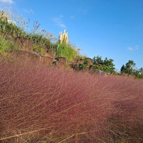 핑크뮬리 정말 예쁘고 여긴 산책로가 걷기 편하게 넘 잘되어 있어서 걷기 힘들어하는 울 둘째도 잘 다녀왔어요 중간 중간 쉴수 있게 의자도 잘 되어 있고 일단 나무숲이라 해도 가려주고 선선하게 바람도 불어주어 잘 다녀왔어요 가을에 딱 맞게 해도 있고 바람도 있고 아이랑 천천히 산책로 따라 놀다왔어요
