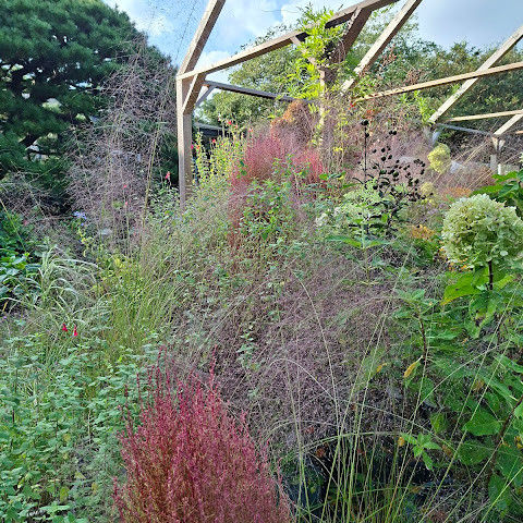가을철 가을정원에는 핑크뮬리, 억새, 다양하게 조성되어있어요.