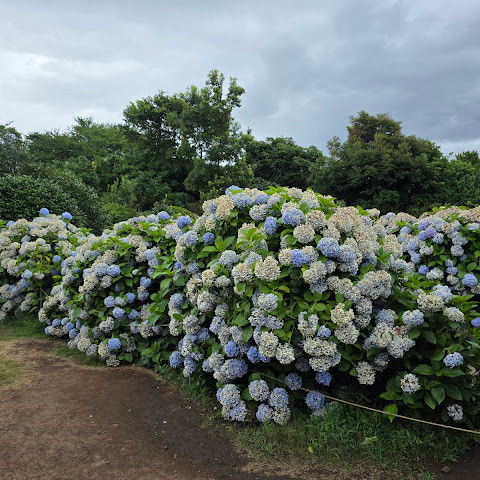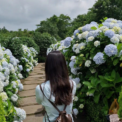 제주 수국 명소로 손꼽히는 곳이에요🤩. 여름이면 공원 곳곳에 다양한 색깔과 품종의 수국이 만발합니다.