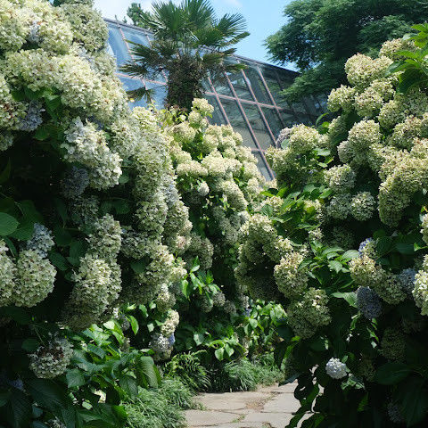 공원은 꽤 지루해요. 수국이 가득하지만 대부분 시들어 있어요. 꽃이 만발한 것 같지도 않고요.