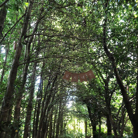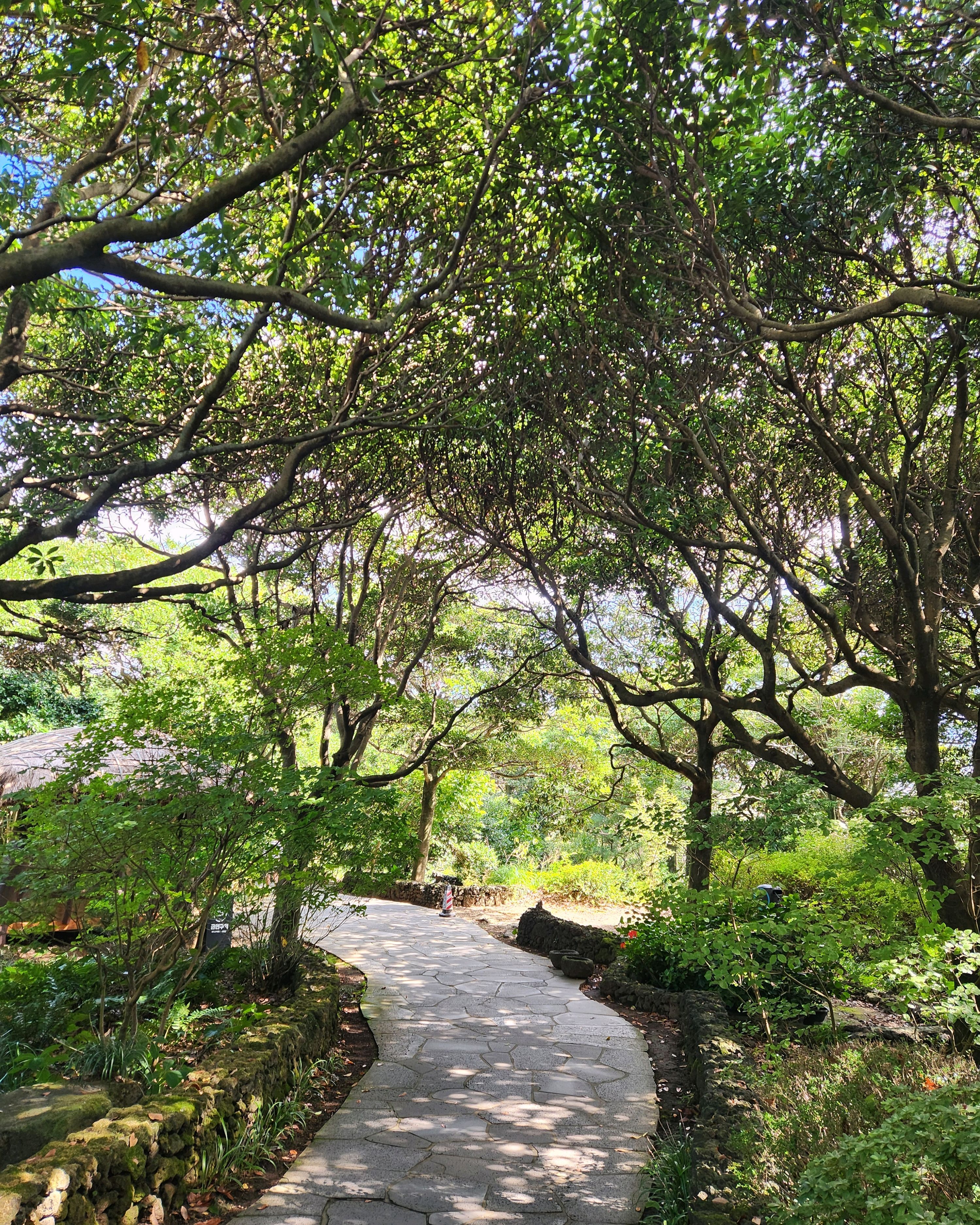 이곳은 제주도에서 동백꽃과 수국을 보기에 인기 있는 명소입니다. 여름에는 더울 수 있지만, 그늘이 풍부합니다.