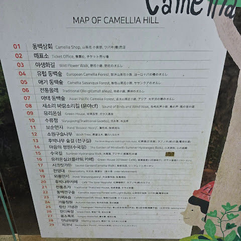 10월 6일에 갔는데 꽃이 하나도 없었어요. 동백꽃은 12월부터 2월까지 피니까 지금 걸어도 돼요. 투어 버스는 관광객으로 가득 차 있었어요. 투어 가이드는 꽃이 없는 걸 모르는 걸까요?