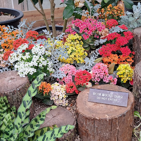 꽃 전시회가 정말 잘 기획되고 디자인되었네요! 동백나무들이 정말 키도 크고 튼튼해요!