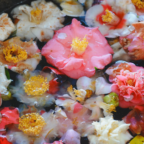 꽃 사진 좀 찍었어요!<br>카페에서 동백꽃 반쪽 에이드를 마셨어요!