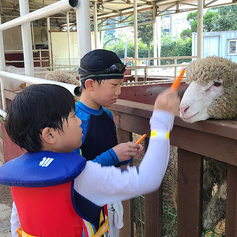 아이와 동물(소, 말, 양, 염소, 돼지, 오리, 미꾸라지, 거북이) 먹이주기체험을 할 수 있음,