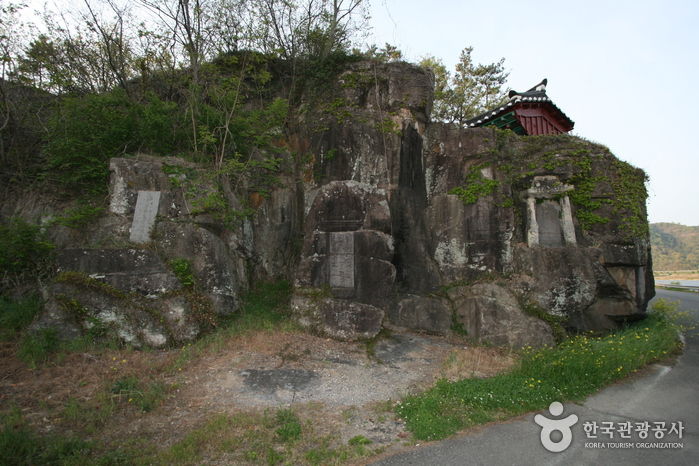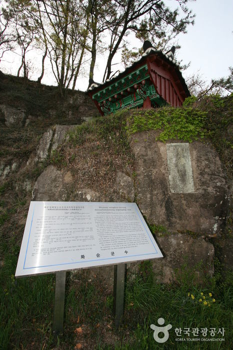 조선시대 성종 16년(1485) 능성현의 남쪽 오리정 앞에서 구질건연까지의 도로수축 사업에 시주한 사람들의 이름을 새긴 암각 기문이다. 지석천변의 최경회의 정각이 있는 석대 아래에 새겨져 있다. 전체적으로 가로 150cm, 세로 80cm가량의 면을 이용하여 약 5cm의 크기로 25행 180여자를 새겨 놓았는데 석질이 좋지 않고 풍화가 심하여 왼편으로 갈수록 판독이 어렵다.