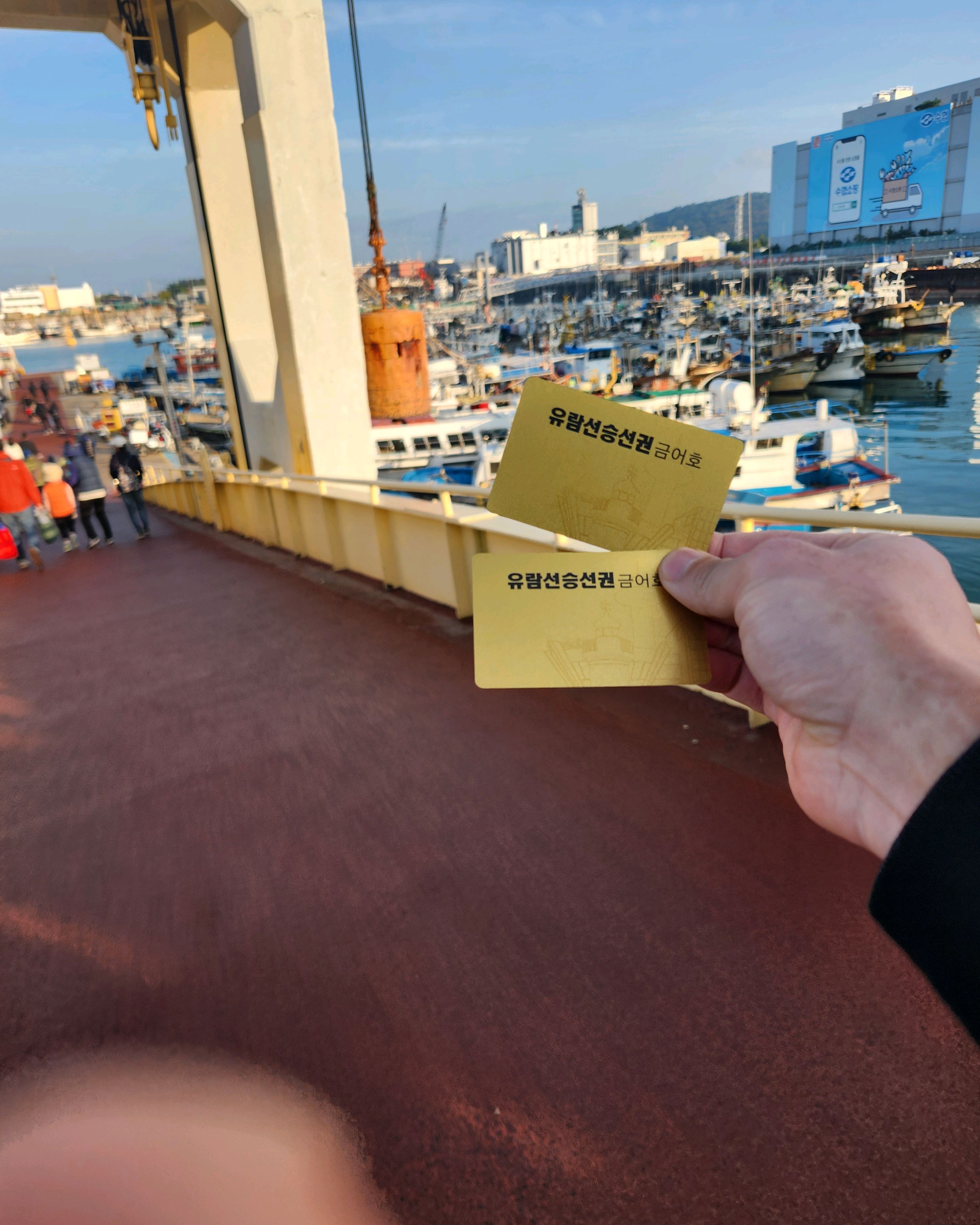성묘하러 배탔는데 사람들이 아주 많았는뎅
