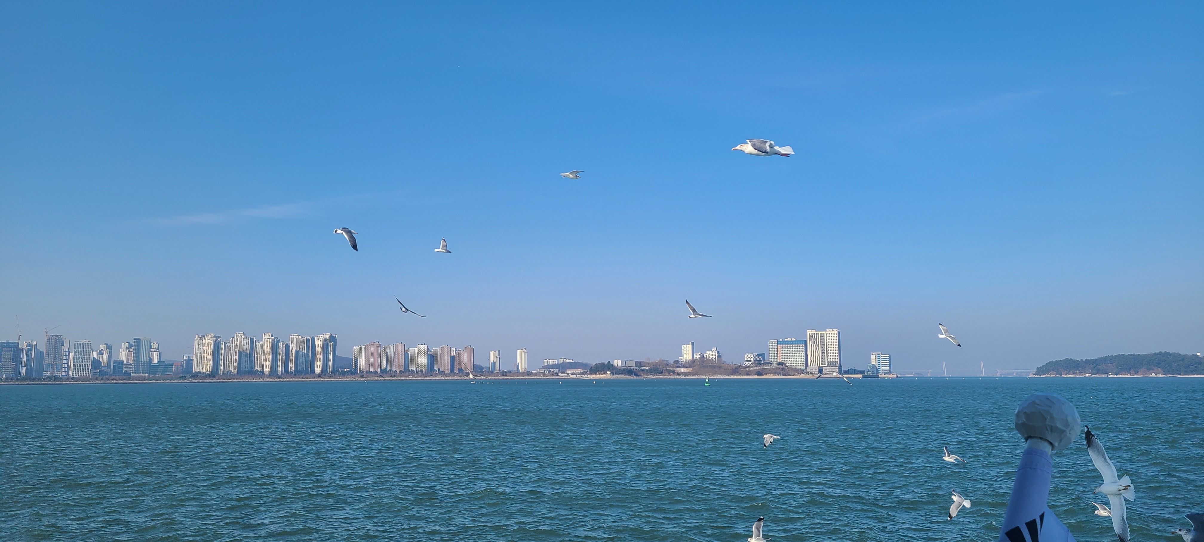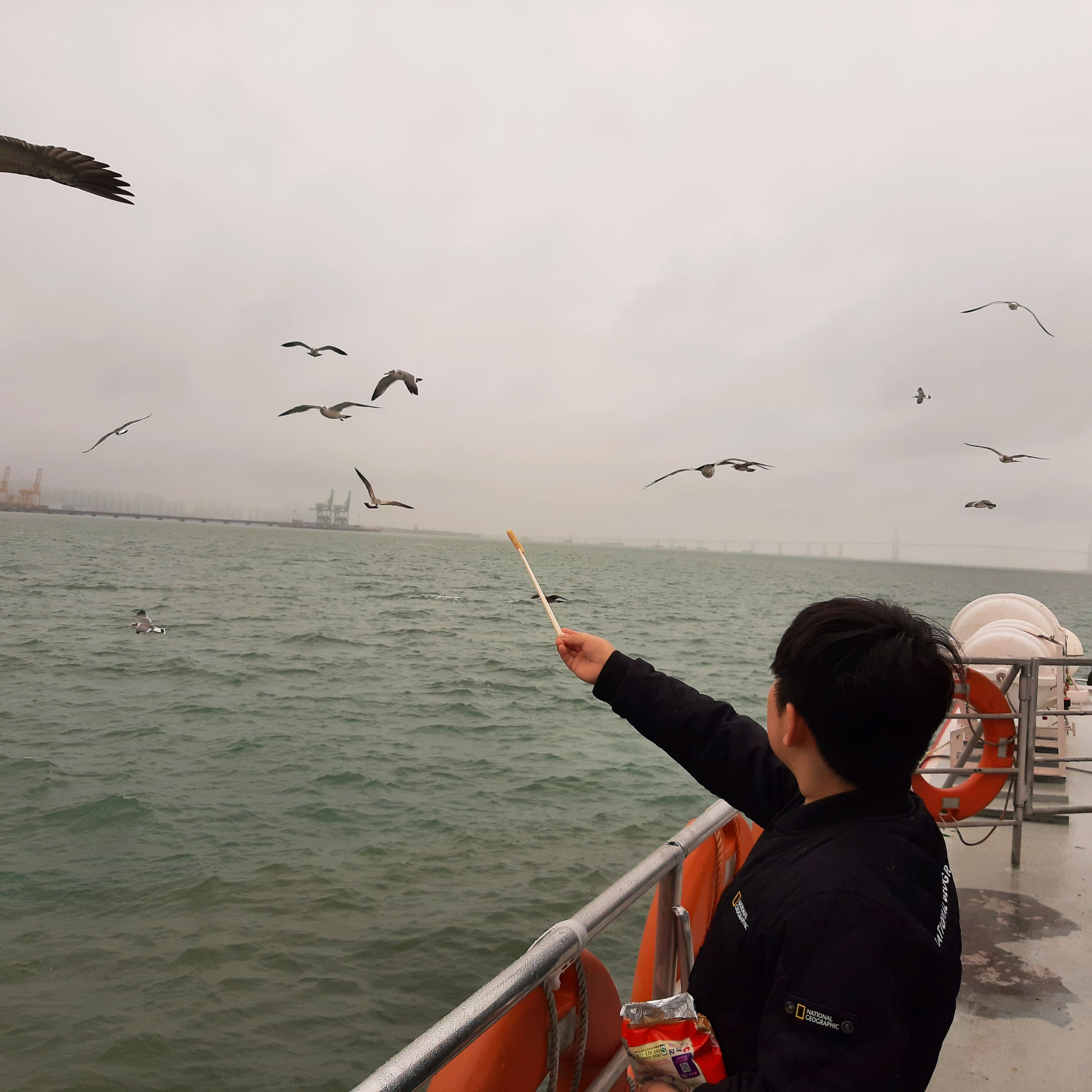 갈매기가 속도 조절하면서 따라와 새우깡 먹는게 너무 신기했습니다